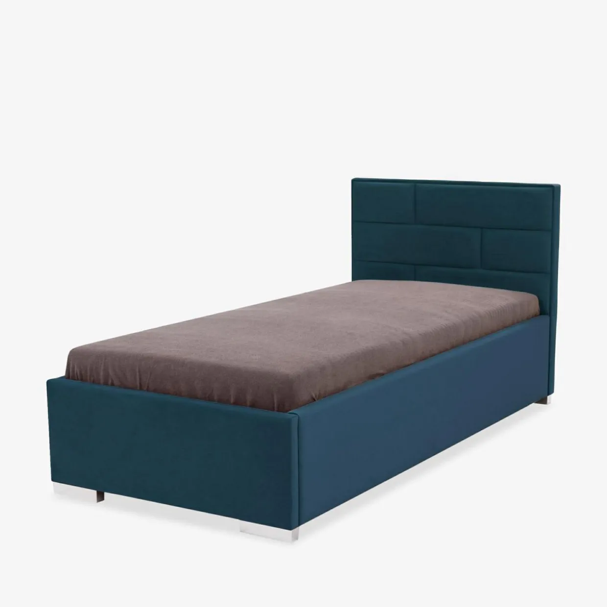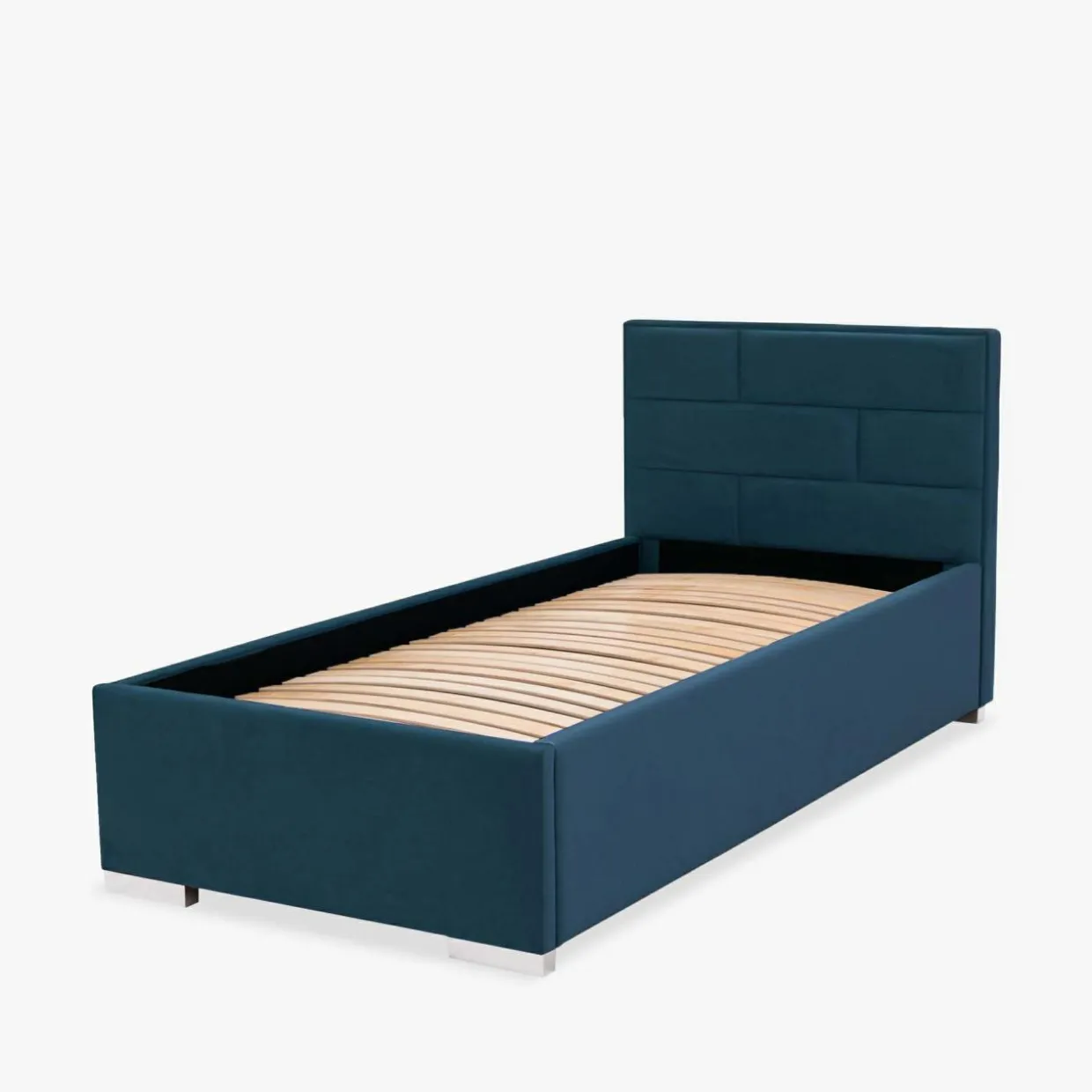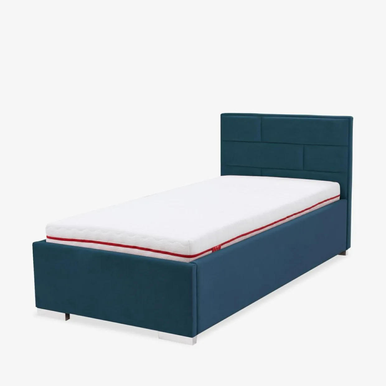 - Łóżko zostało wyposażone w ramę oraz stelaż, które stworzą komfortową przestrzeń do spania dla jednej osoby.