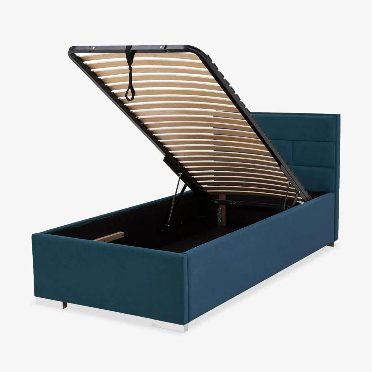 - Pod stelażem znajduje się pojemnik na pościel, w którym przechowasz domowe tekstylia. Gazowy podnośnik pozwoli Ci dostać się do pojemnika bez użycia dużej siły.