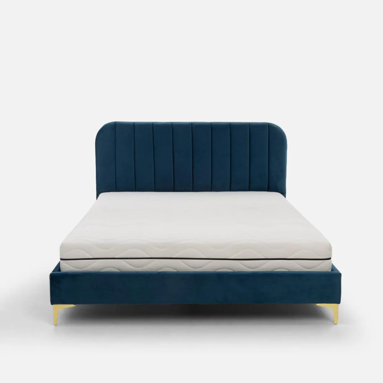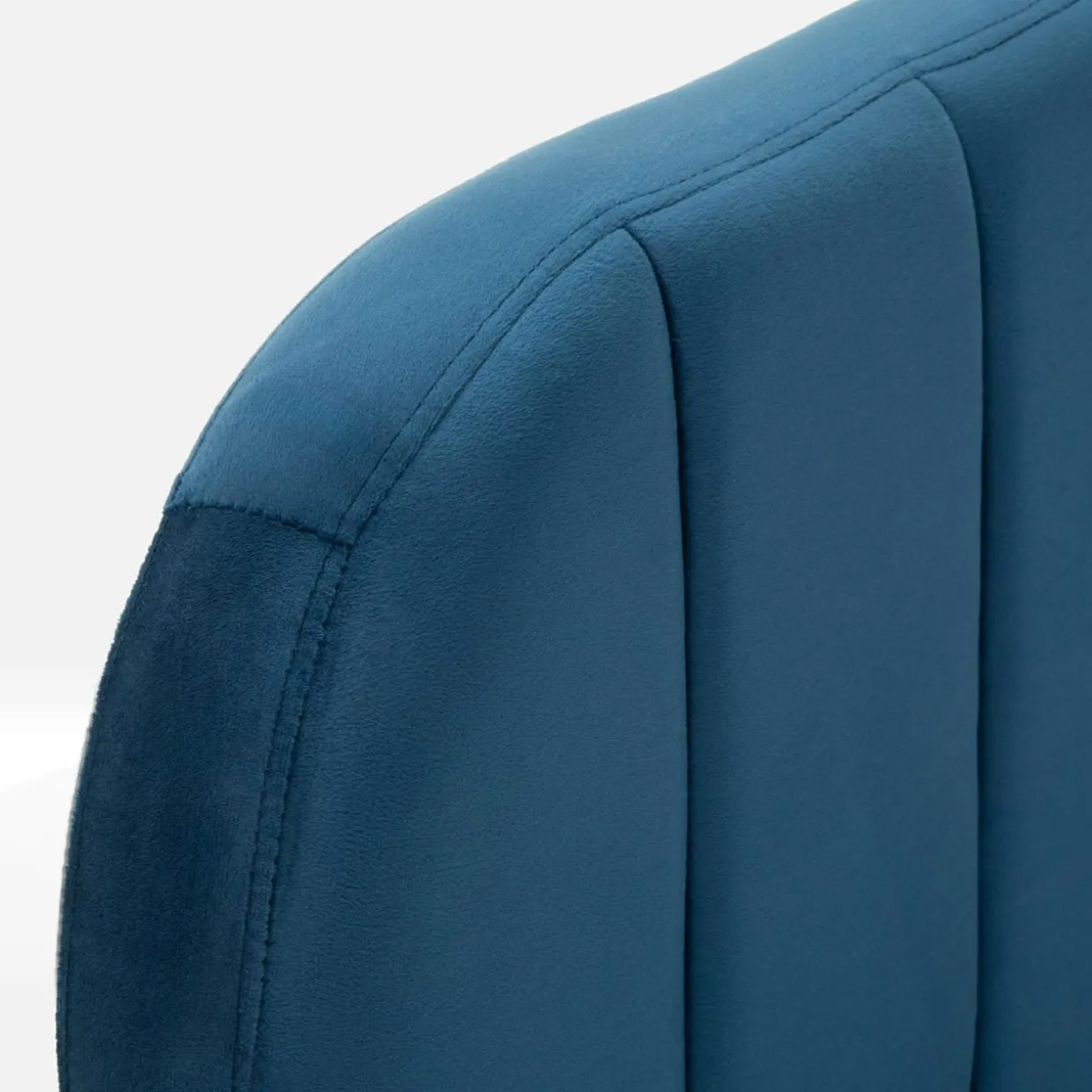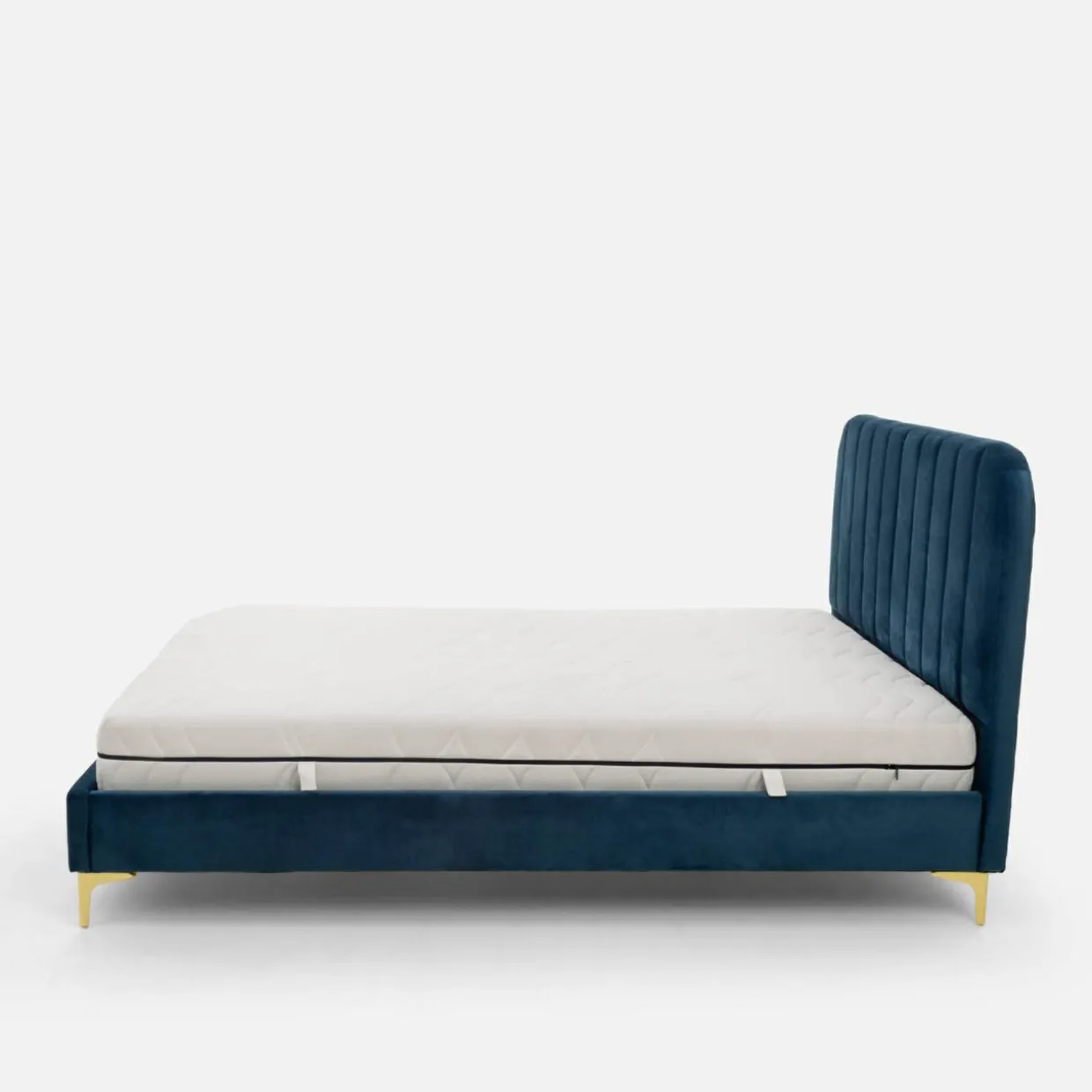 Głęboki odcień niebieskiego, złote nogi i delikatny akcent w postaci przeszyć – te cechy łóżka KENAQ sprawią, że Twoja sypialnia nabierze klasy.
