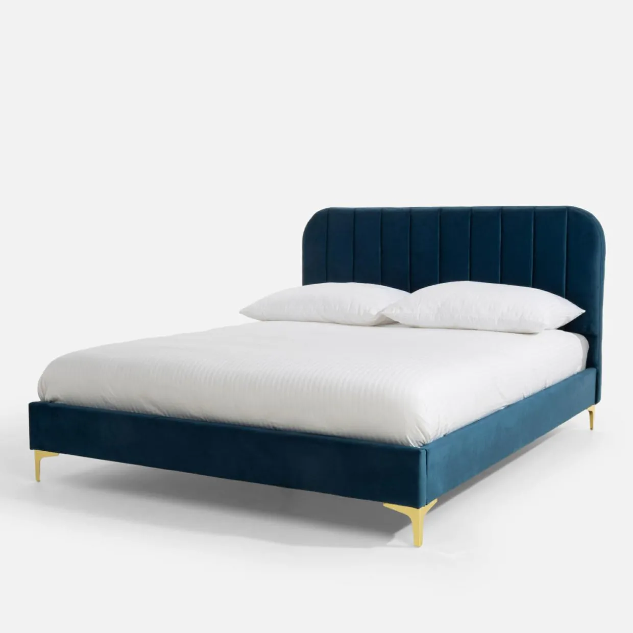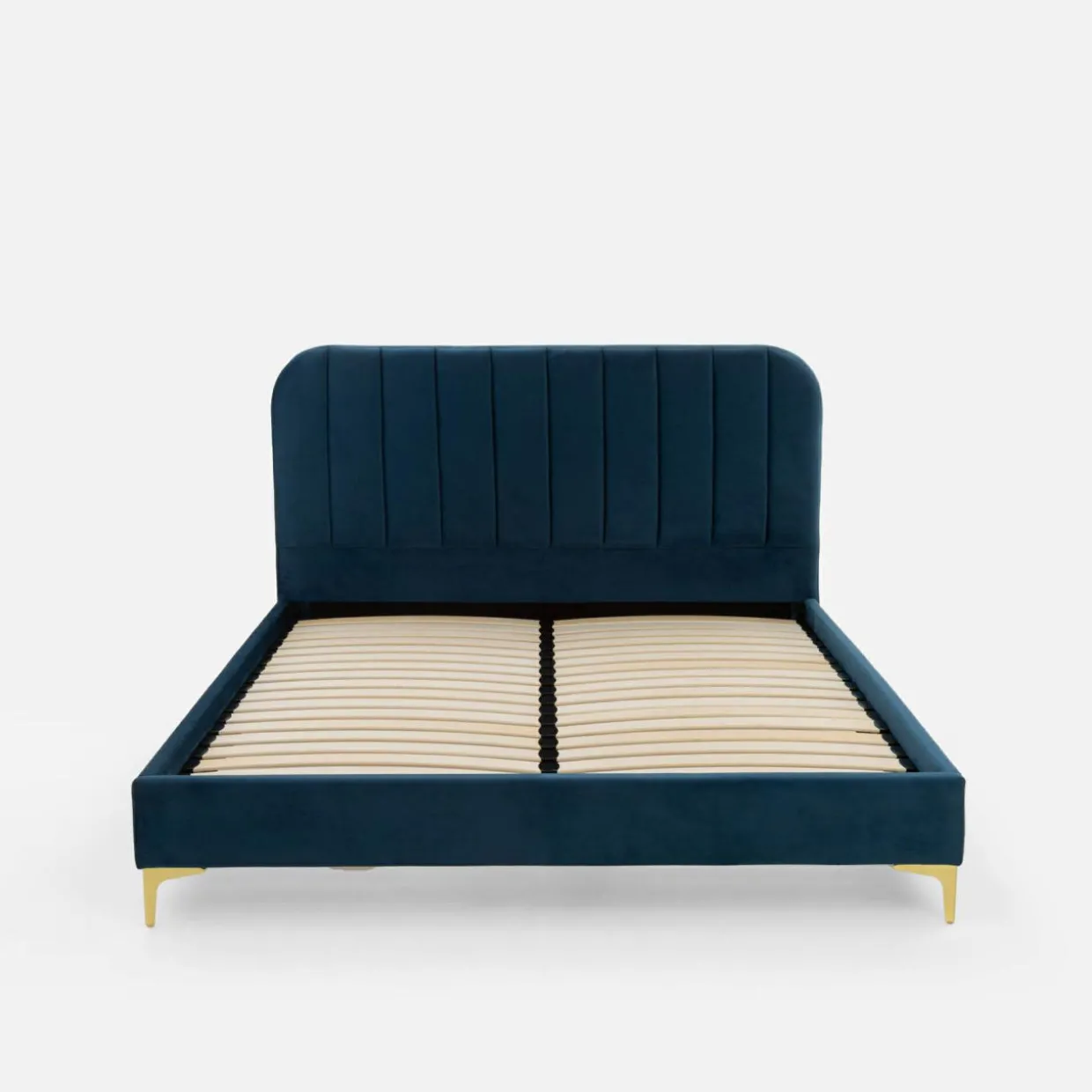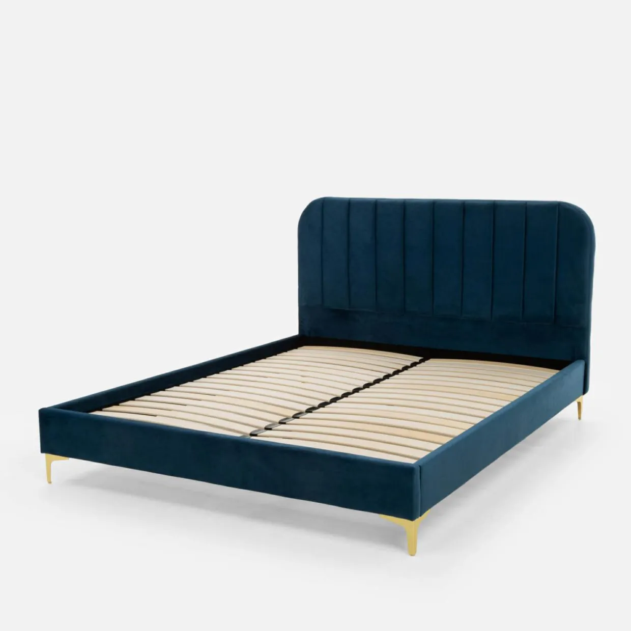 Głęboki odcień niebieskiego, złote nogi i delikatny akcent w postaci przeszyć – te cechy łóżka KENAQ sprawią, że Twoja sypialnia nabierze klasy.