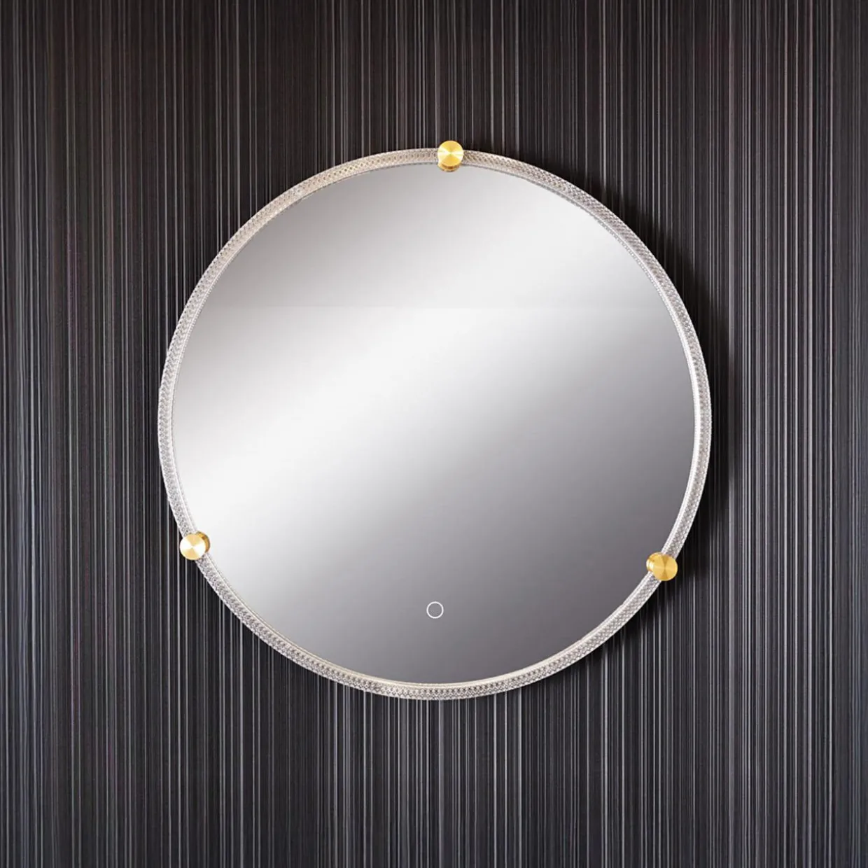 - Oświetlenie LED ukryte w akrylowej ramie otacza okrągłą taflę lustra. Dzięki temu jego powierzchnia jest zawsze dobrze doświetlona.