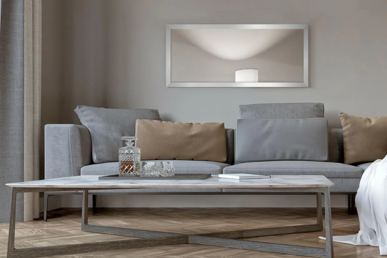 Srebrny kolor nadaje prostej ramie lustra SLIM elegancki i szykowny wygląd. Będzie ono doskonałym uzupełnieniem zarówno minimalistycznej i klasycznej aranżacji pomieszczenia, jak i w stylu glamour. Możesz je zawiesić tradycyjnie w przedpokoju – w pionie, ale masz też możliwość zawieszenia go poziomo, na przykład w sypialni nad toaletką lub w salonie nad komodą.