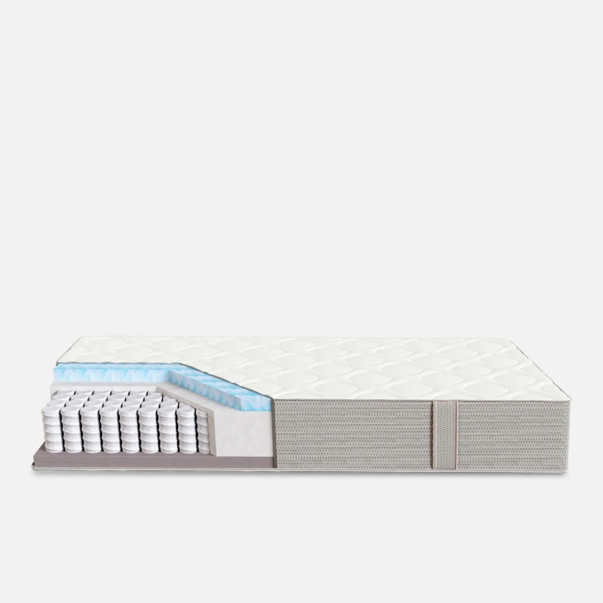 - W środku materaca mieszczą się sprężyny kieszeniowe. Każda z nich umieszczona jest w osobnej kieszonce, dzięki czemu pracują osobno, a materac posiada podwyższony komfort użytkowania. Dopasowuje się do postury ciała, dba o prawidłowe ułożenie kręgosłupa. Sprężyny kieszeniowe będą dobrym wyborem dla par z różnicą wagi.