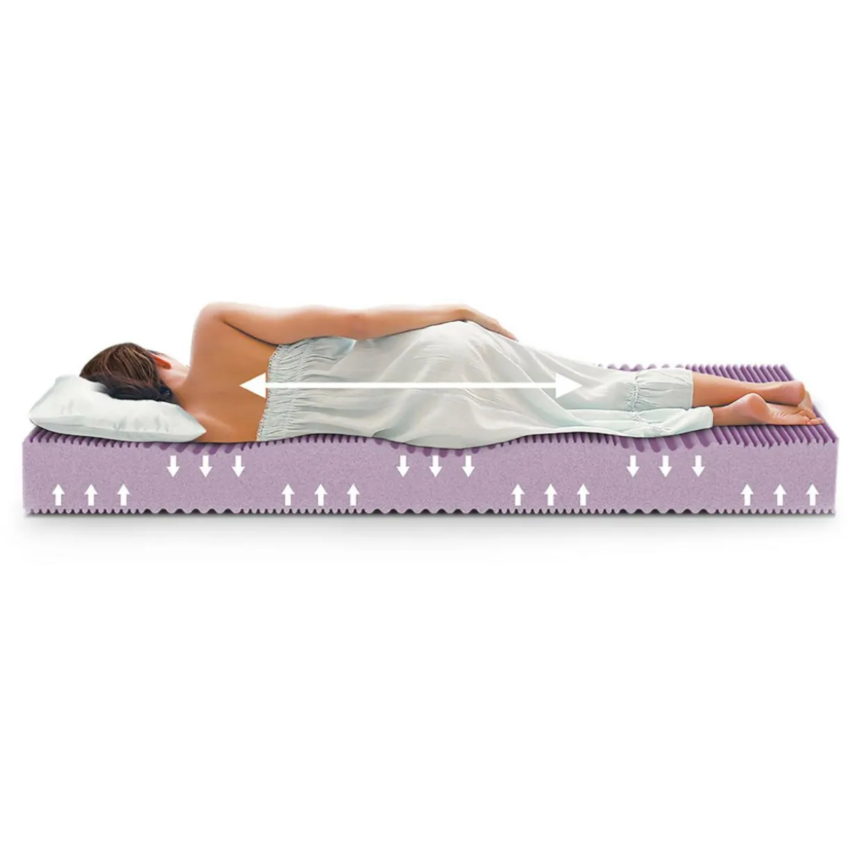 Zapewnia elastyczność, sprężystość i delikatne uczucie masażu. Dzięki profilowaniom pianka posiada 7 stref o różnej twardości. Dzięki temu każda część ciała jest odpowiednio podparta.