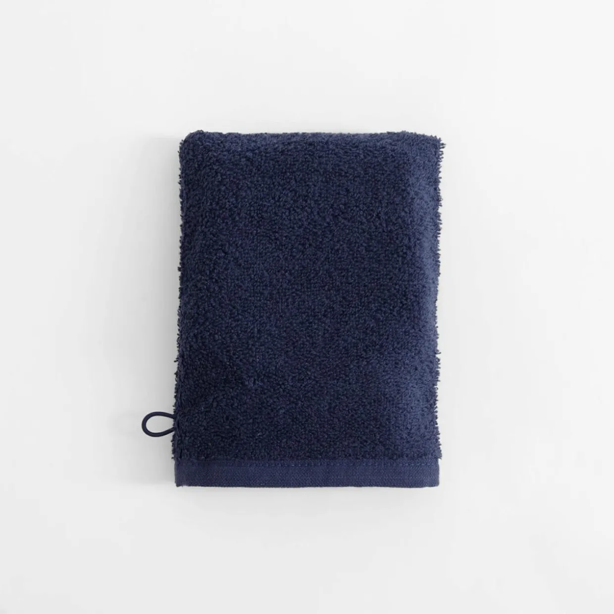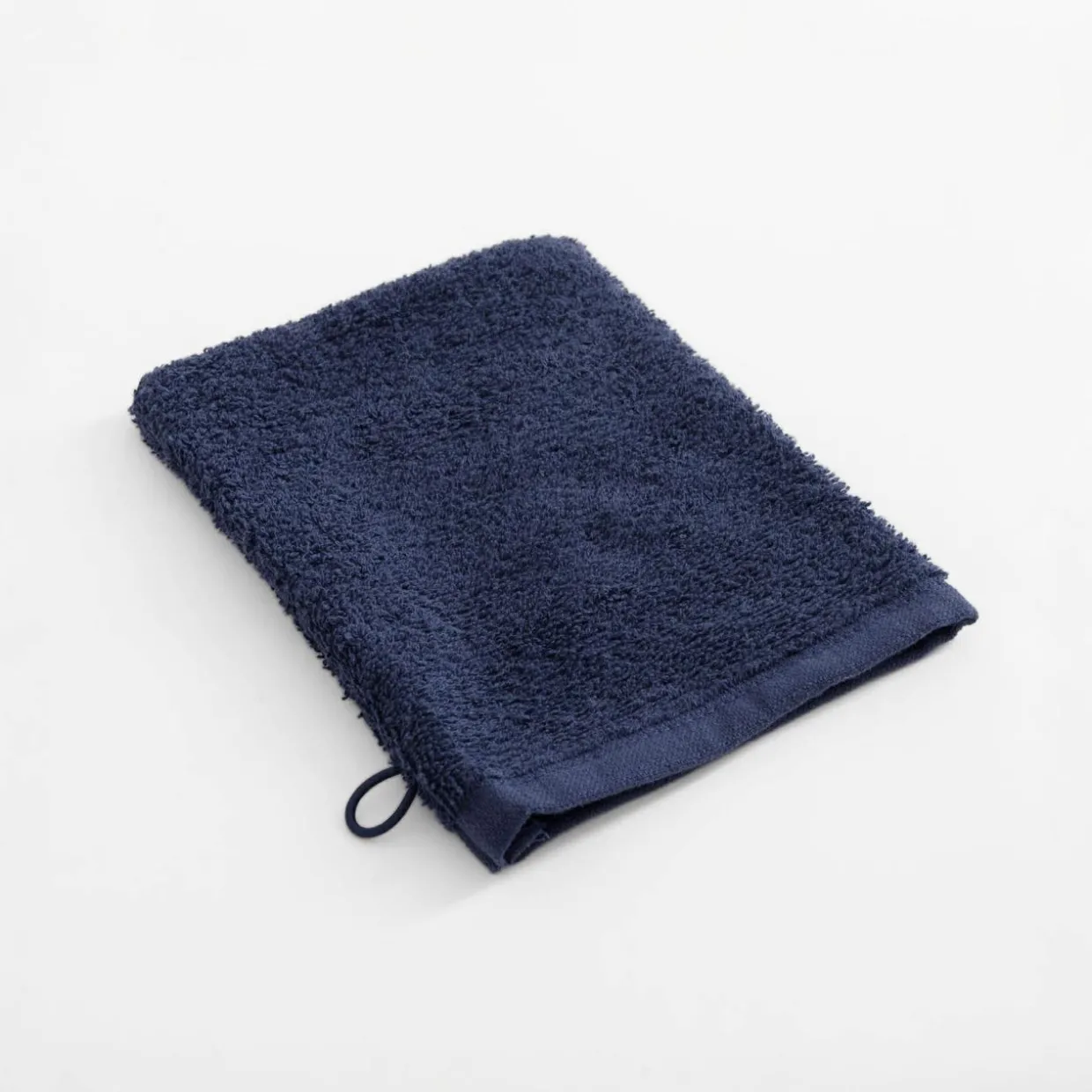 Ciemnoniebieska myjka o wymiarach 16×21 cm przyda się do delikatnej codziennej pielęgnacji.
