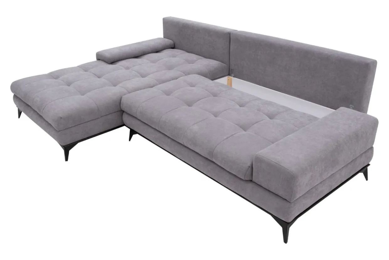 Narożnik posiada mechanizm DL – pozwalający na płynne i nie wymagające większego wysiłku rozłożenie. Otrzymamy posłanie o powierzchni spania 132×247 cm.