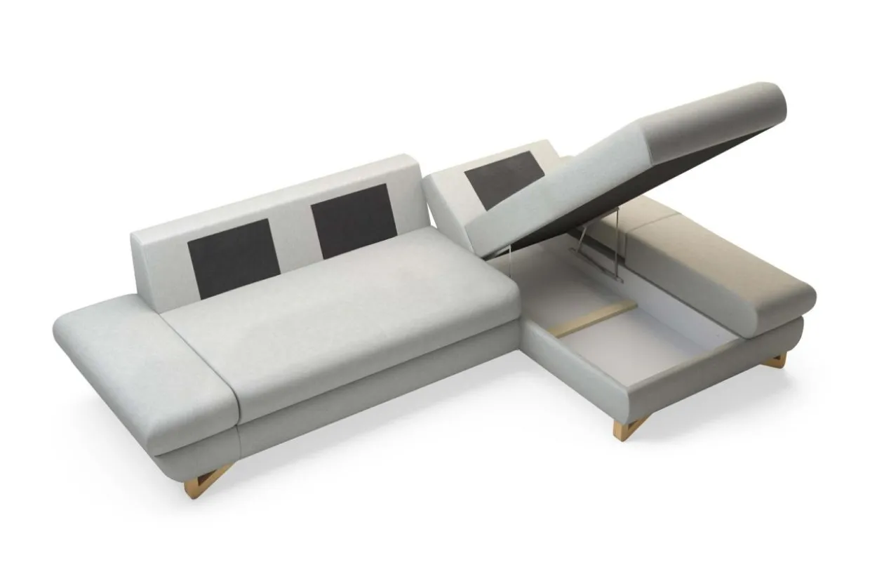 Poręczny schowek znajduje się w otomanie narożnika. Po uniesieniu do góry wierzchniej części pozwala szybko i bez zbędnego wysiłku wyciągnąć pościel.