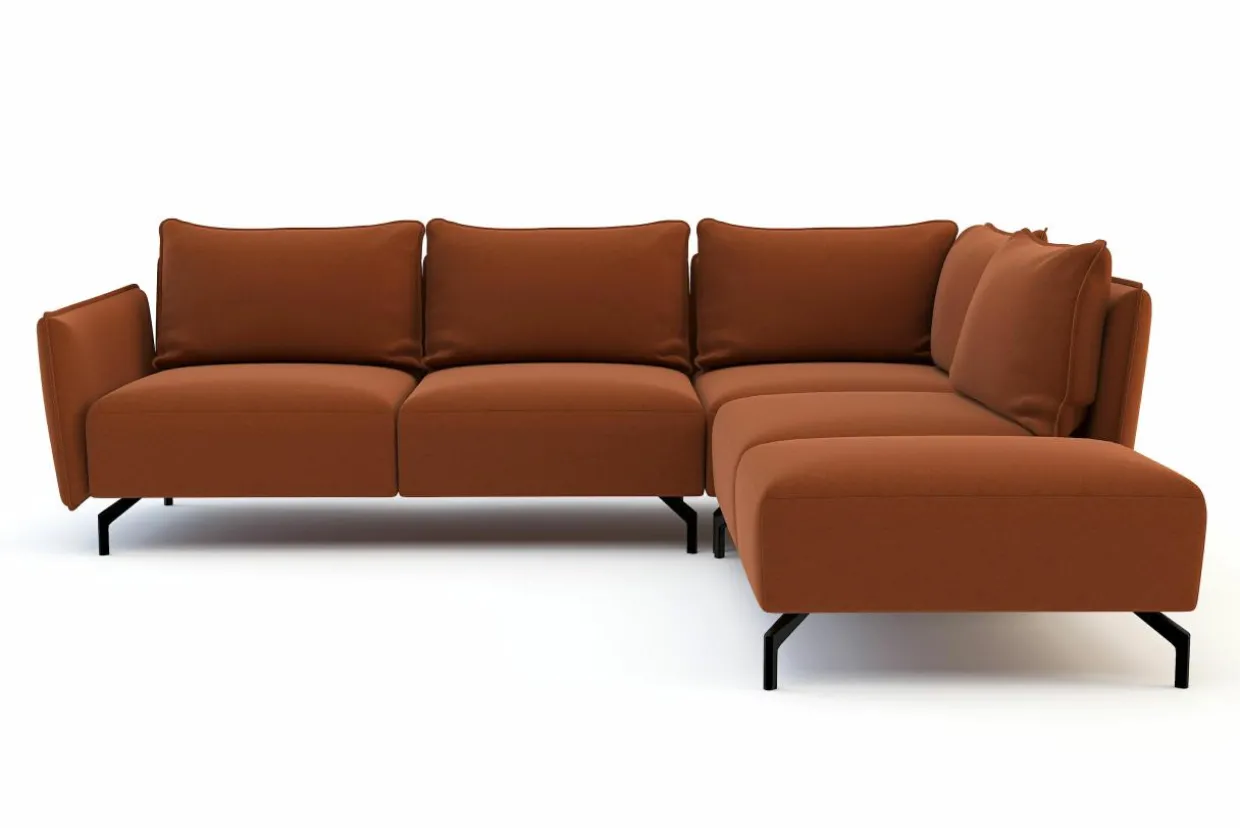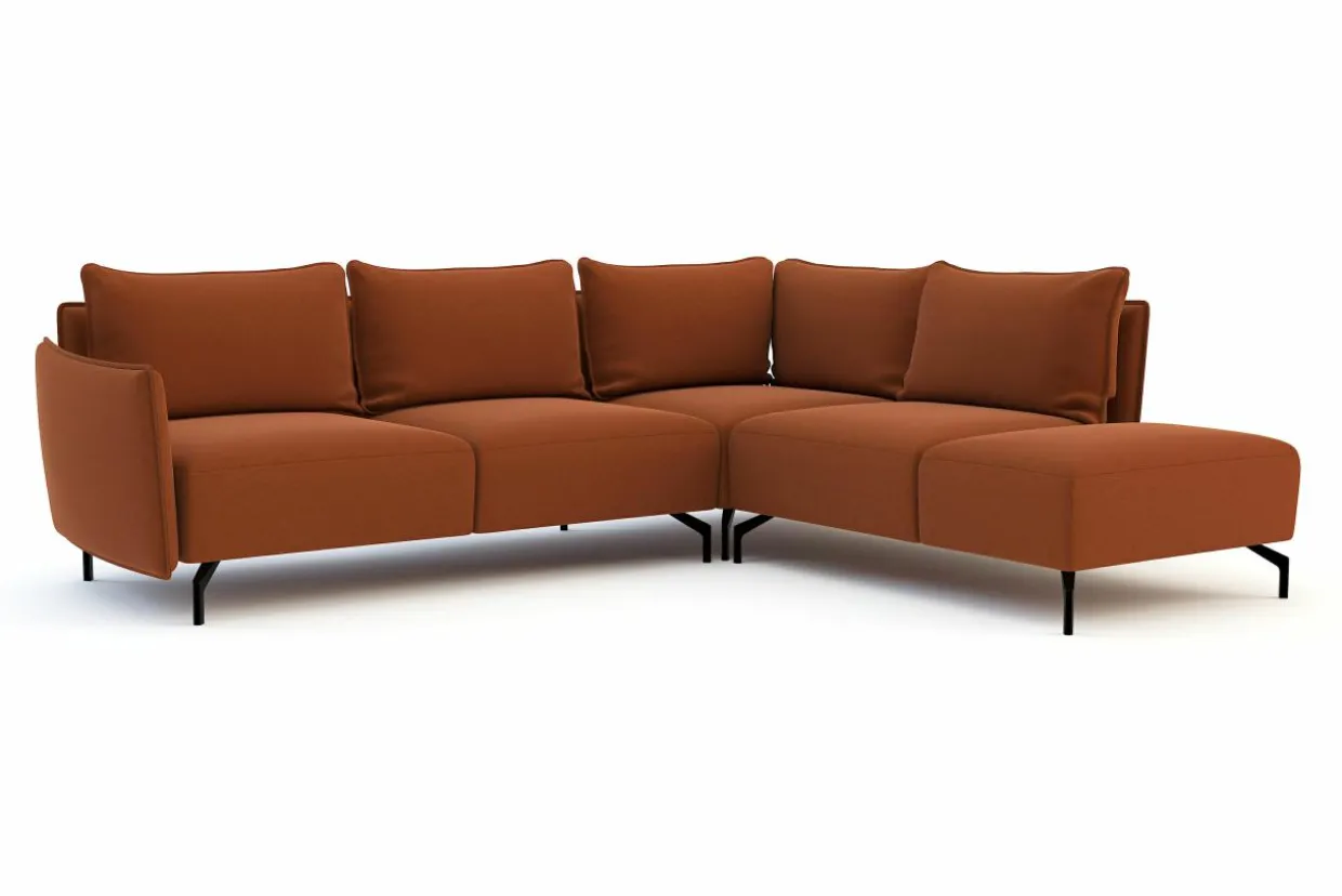 - Metalowe nóżki w czarnym kolorze świetnie pasują do nowoczesnego designu narożnika i dodają mu lekkości.