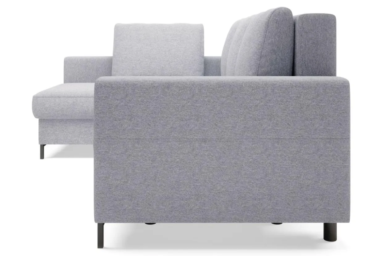 Ciecz skrapla się na jej powierzchni tkaniny i masz więcej czasu na wytarcie rozlanego soku. Narożnik w szarym kolorze możesz wkomponować w nowoczesną przestrzeń. Dzięki metalowym nóżkom narożnik wpasuje się w surowe wnętrza w stylu industrialnym.