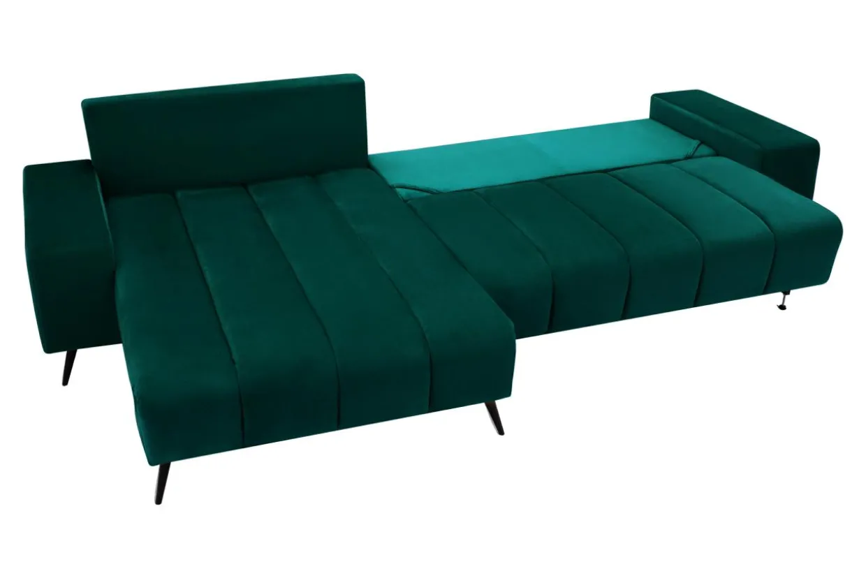 Rzucające się w oczy pionowe linie w narożniku VELVET NEW oraz pełny głębi szmaragdowy kolor tapicerki nadają mu oryginalnego stylu.