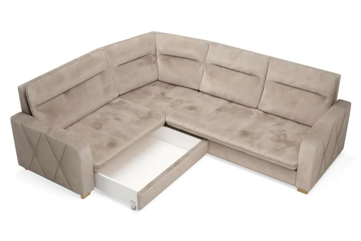 Pojemnik na pościel w formie szuflady znajduje się pod bocznym siedziskiem. Możesz z niego korzystać naprzemiennie z funkcją spania.