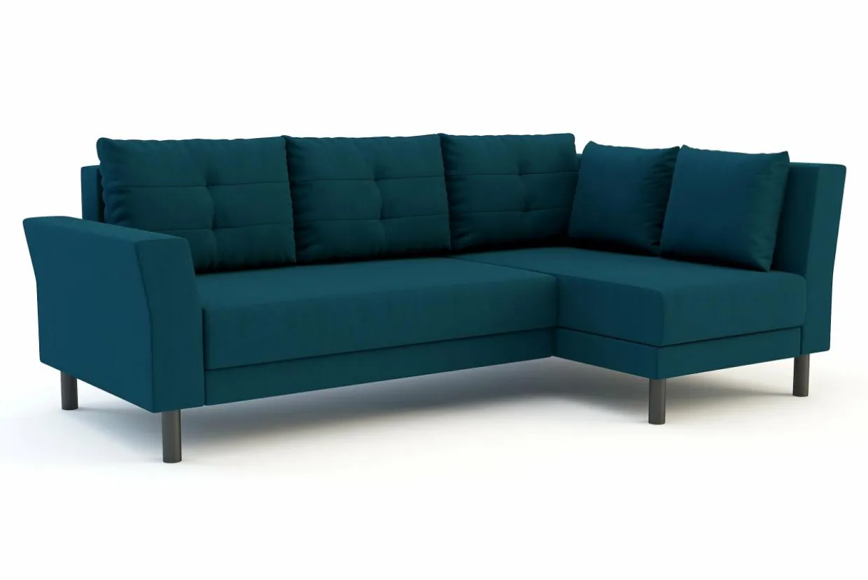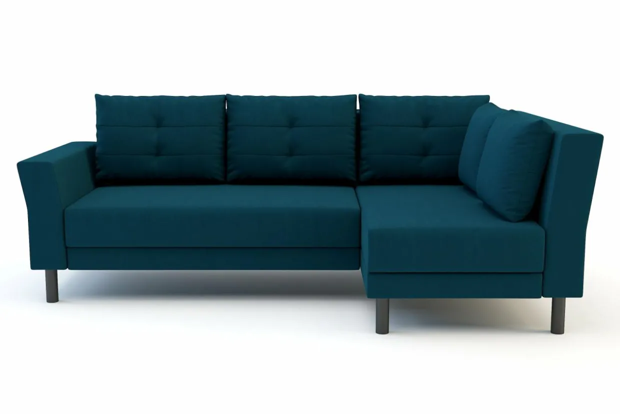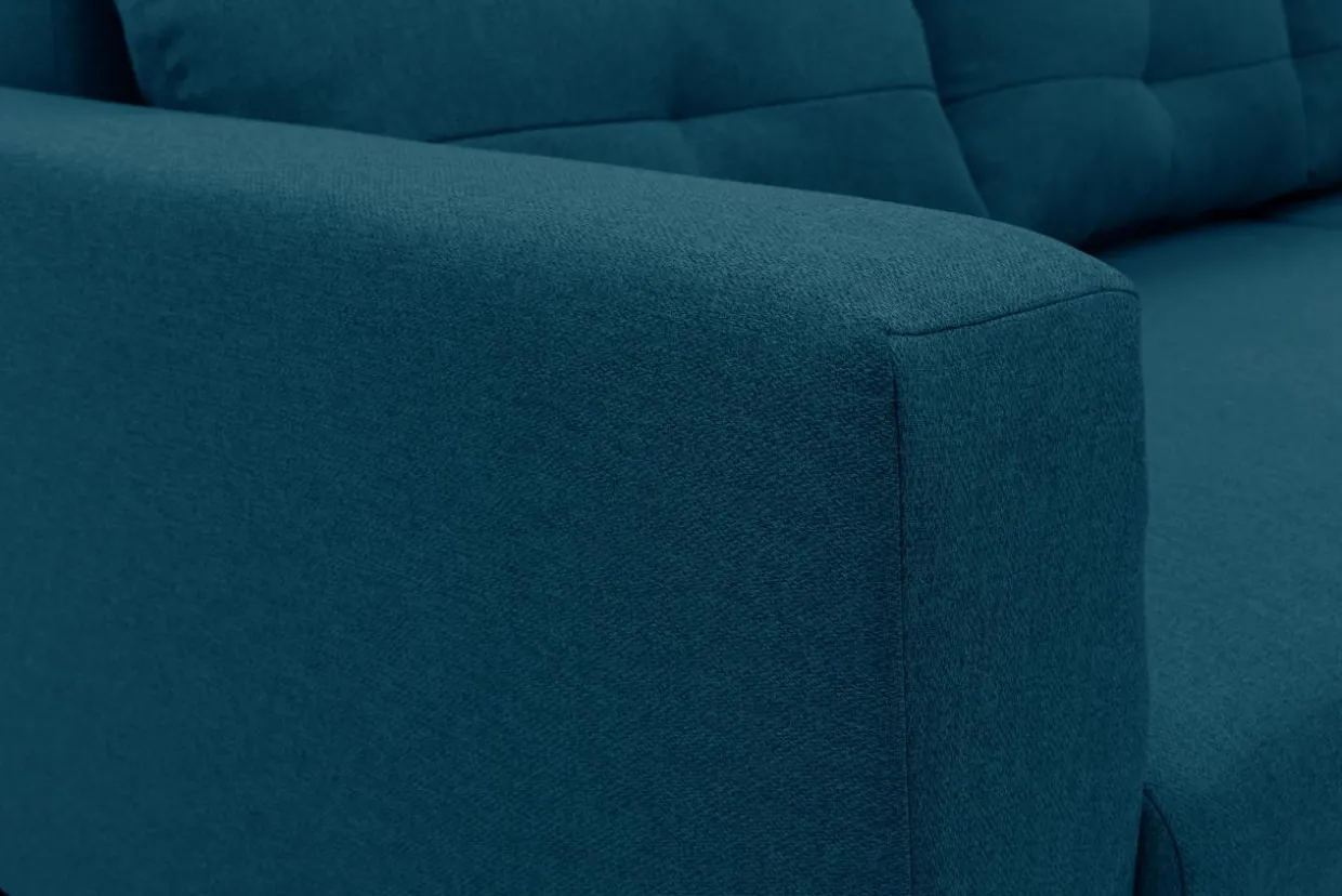 - Zarówno siedzisko, jak i oparcie są wypełnione sprężynami falistymi i pianką. Dzięki temu powierzchnia wypoczynkowa po rozłożeniu narożnika jest tak samo komfortowa.
