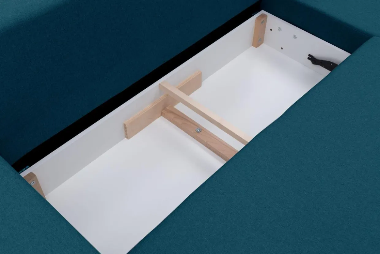 - Miejsce na pościel, koce lub inne tekstylia domowe znajduje się pod siedziskiem.