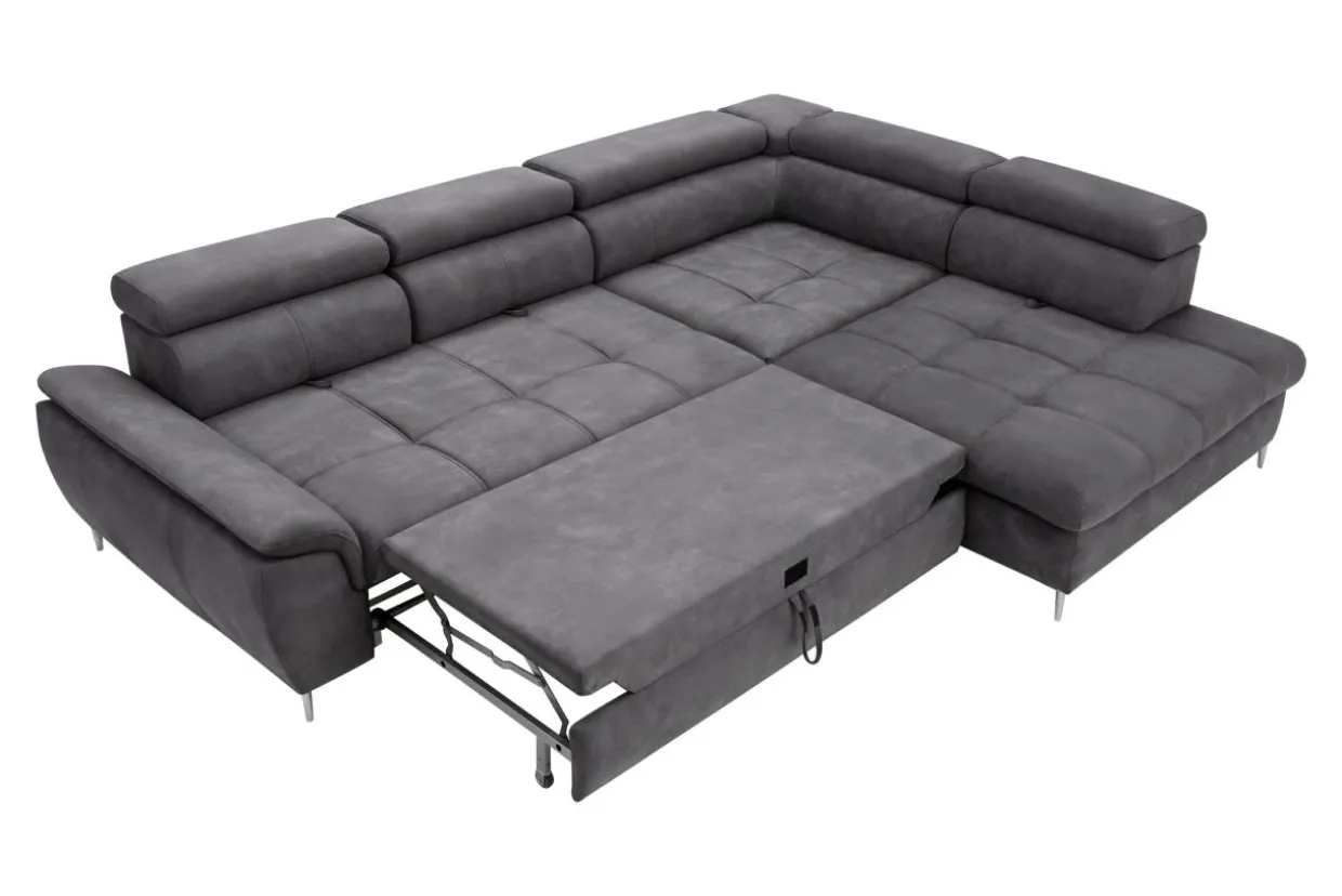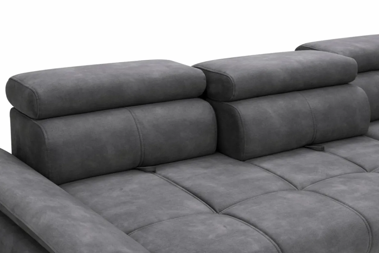Możliwość regulacji zarówno samych zagłówków, jak i trzech elementów oparcia gwarantuje optymalne dopasowanie narożnika do potrzeb użytkowników i zapewnia maksymalny komfort podczas wypoczynku.
