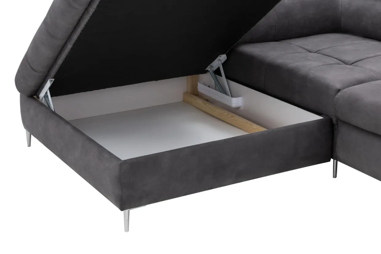 Pojemnik na pościel w otomanie daje nam do dyspozycji dużą przestrzeń, a dostęp do niego dzięki zastosowanym mechanizmom jest ułatwiony i nie wymaga użycia siły, wystarczy podnieść do góry siedzisko.