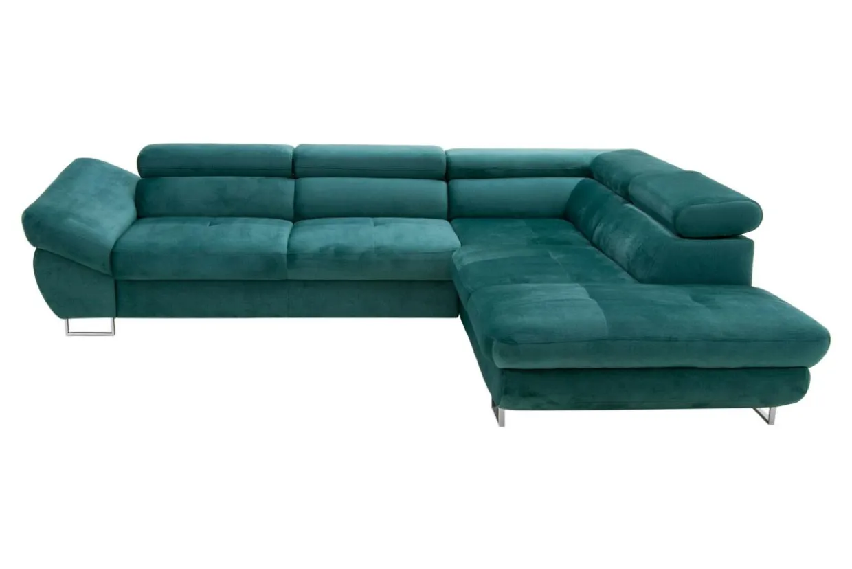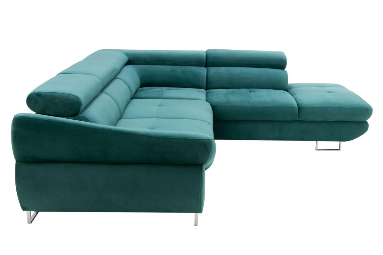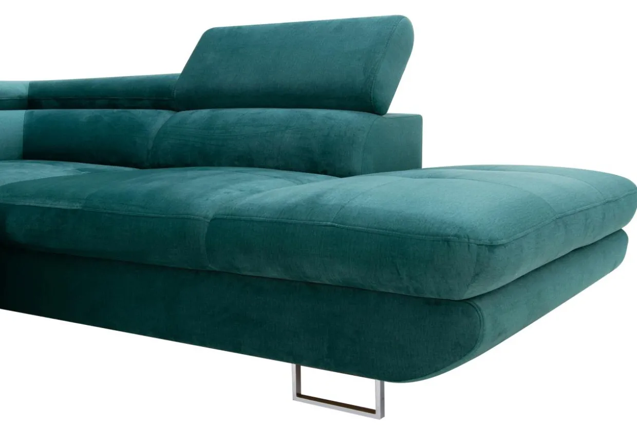 Metalowe nóżki podkreślają nowoczesny charakter narożnika.