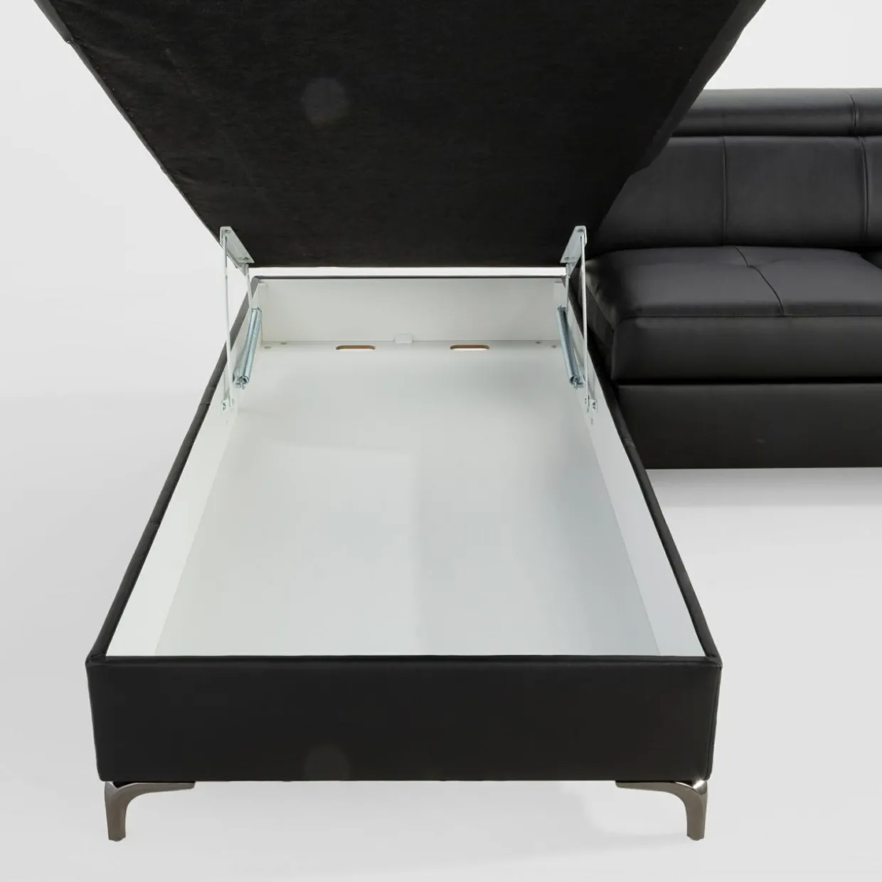 - Nóżki w kolorze czarnego chromu – podkreślają nowoczesny charakter mebla i dodają mu stylu.