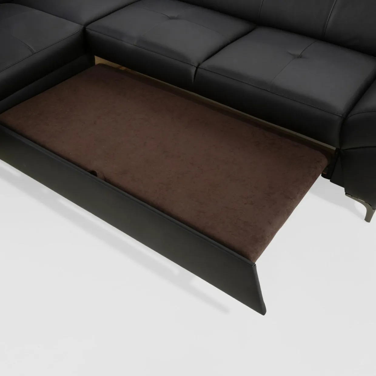 Stelaż pod siedziskiem wysuwamy i podnosimy za pomocą uchwytu. Mebel nie wymaga odsuwania od ściany. Idealny do okazjonalnego spania.