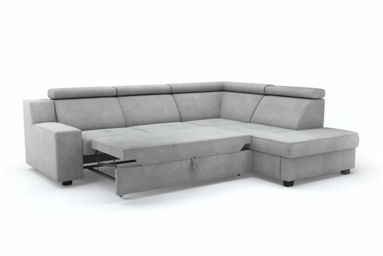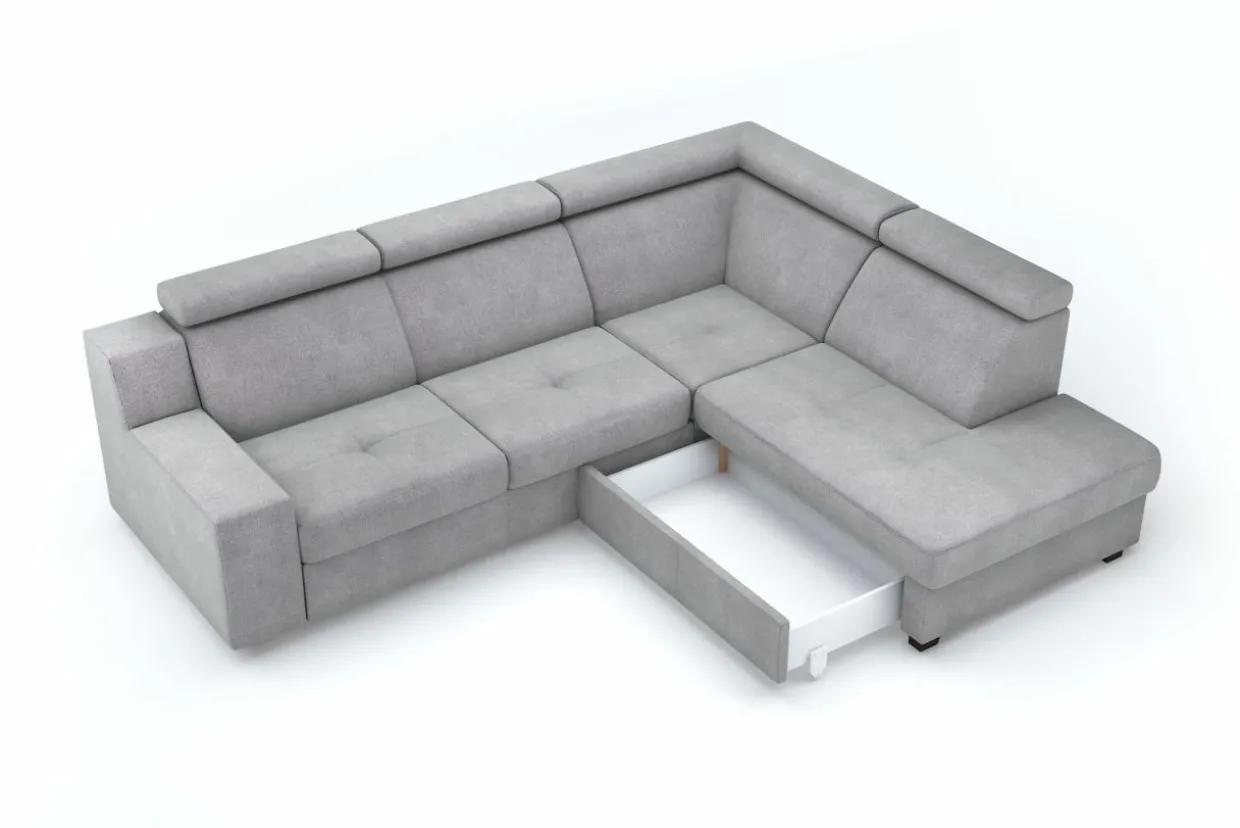 Stelaż pod siedziskiem wysuwamy i podnosimy za pomocą uchwytu. Mebel nie wymaga odsuwania od ściany. Idealny do okazjonalnego spania.