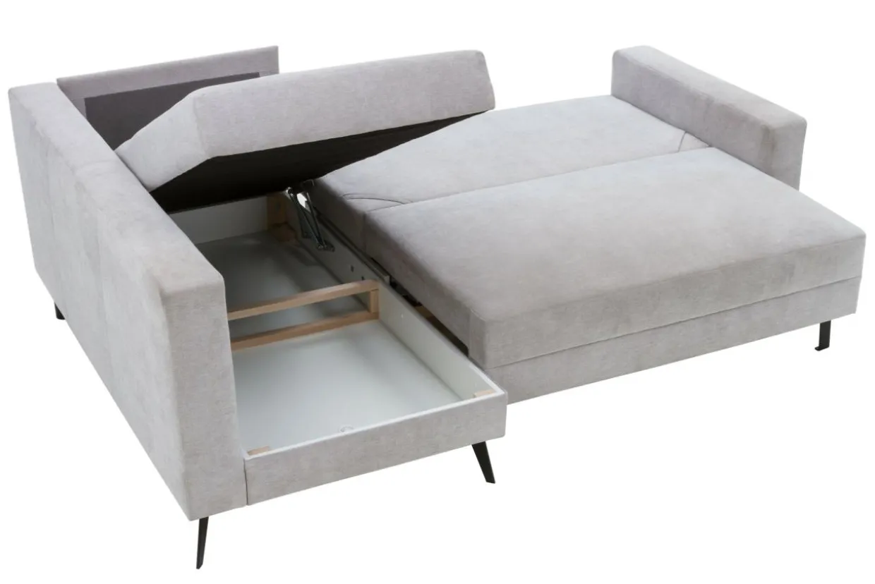 Narożnik jest wyposażony w funkcję z mechanizmem ułatwiającym rozkładanie. Komfort spania jest taki sam po obu stronach dzięki sprężynom falistym.