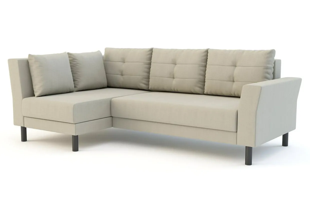 - Zarówno siedzisko, jak i oparcie są wypełnione sprężynami falistymi i pianką. Dzięki temu powierzchnia wypoczynkowa po rozłożeniu narożnika jest tak samo komfortowa.