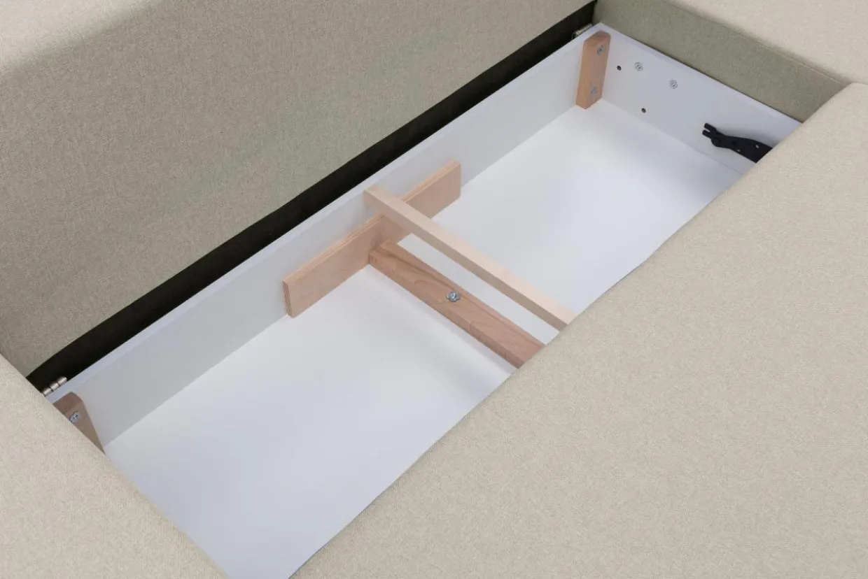 - Miejsce na pościel, koce lub inne tekstylia domowe znajduje się pod siedziskiem.
