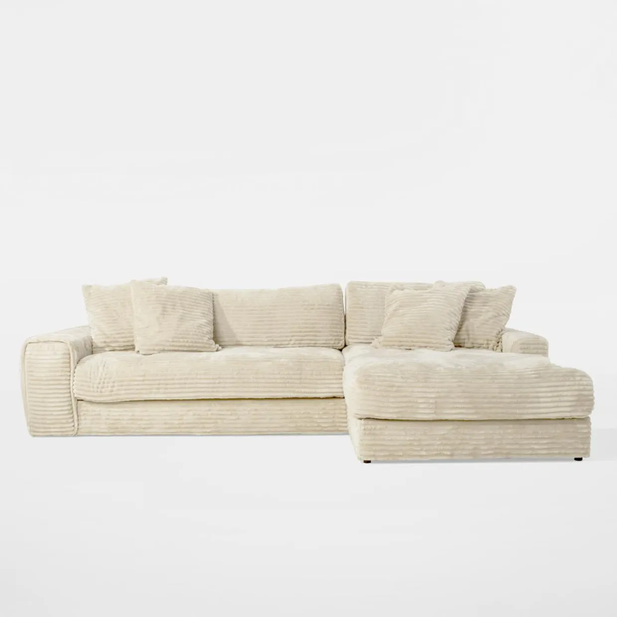 Miękki plusz, głębokie siedzisko i dużo miejsca na leżance… od narożnika TAMERA trudno będzie się oderwać w pochmurne wieczory. Delikatny, kremowy odcień będzie świetnie wyglądać w towarzystwie lampy z ciepłym światłem i meblami z jasnego drewna, co podkreśli przytulną atmosferę w salonie.