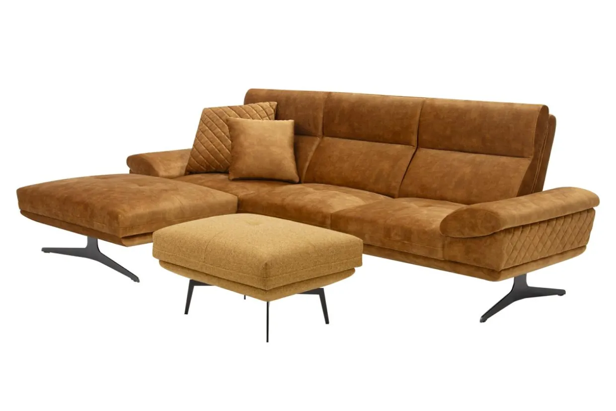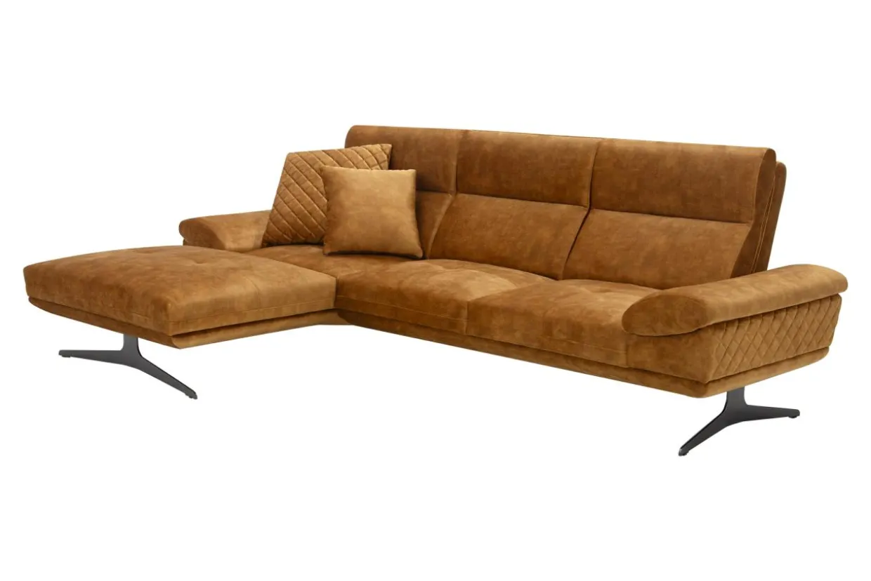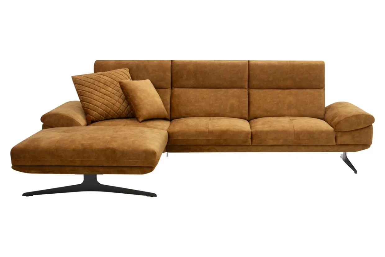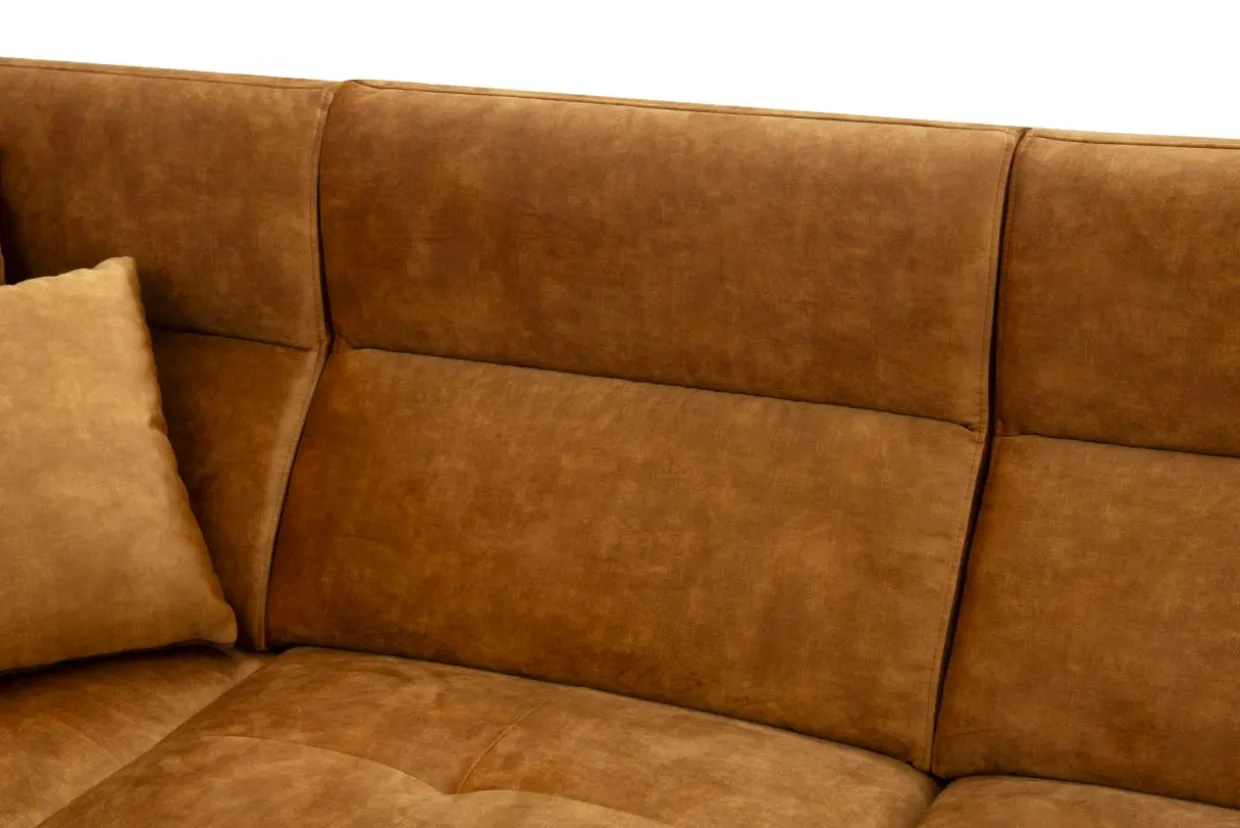 - Narożnik w miodowym kolorze dobrze zaprezentuje się w eleganckim, nowoczesnym salonie. Zestaw go ze szklanymi, kryształowymi lub złotymi dodatkami, a uzyskasz efekt luksusu.