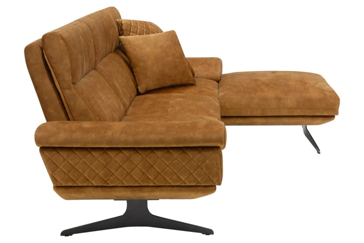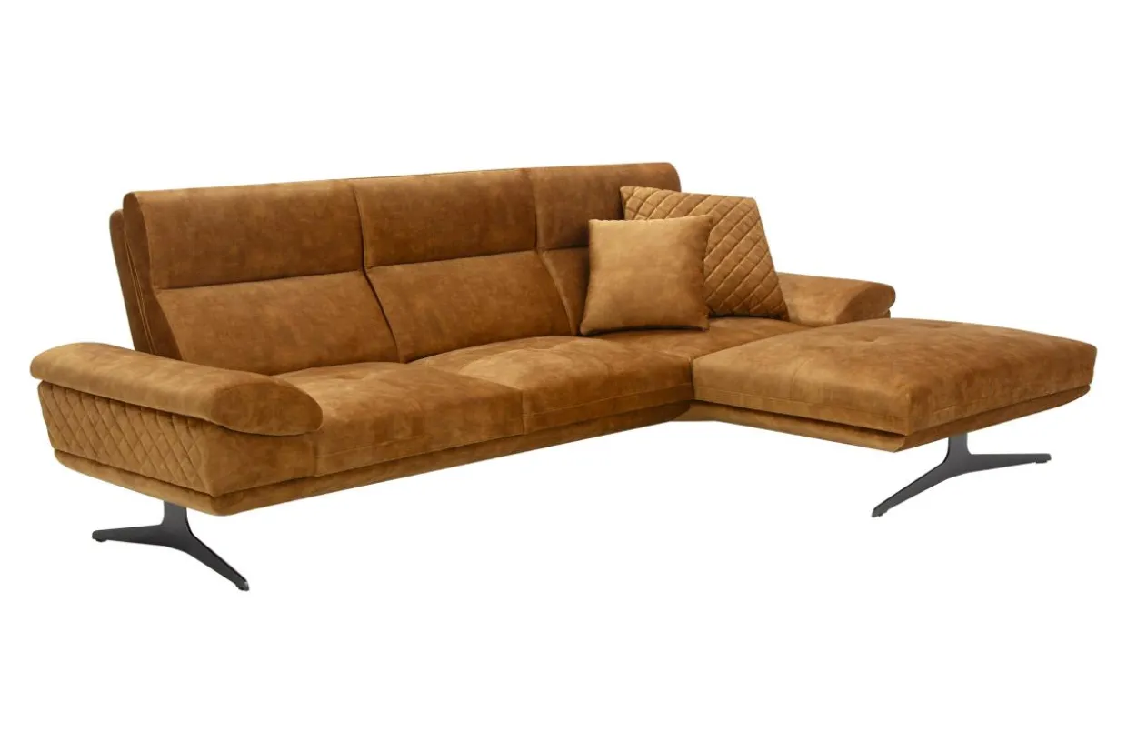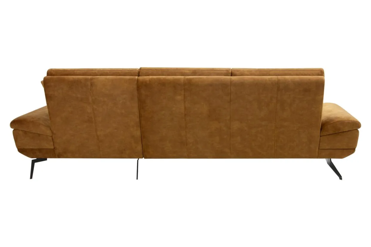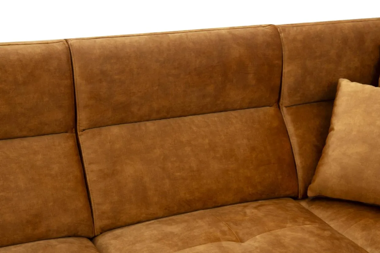 - Narożnik w miodowym kolorze dobrze zaprezentuje się w eleganckim, nowoczesnym salonie. Zestaw go ze szklanymi, kryształowymi lub złotymi dodatkami, a uzyskasz efekt luksusu.