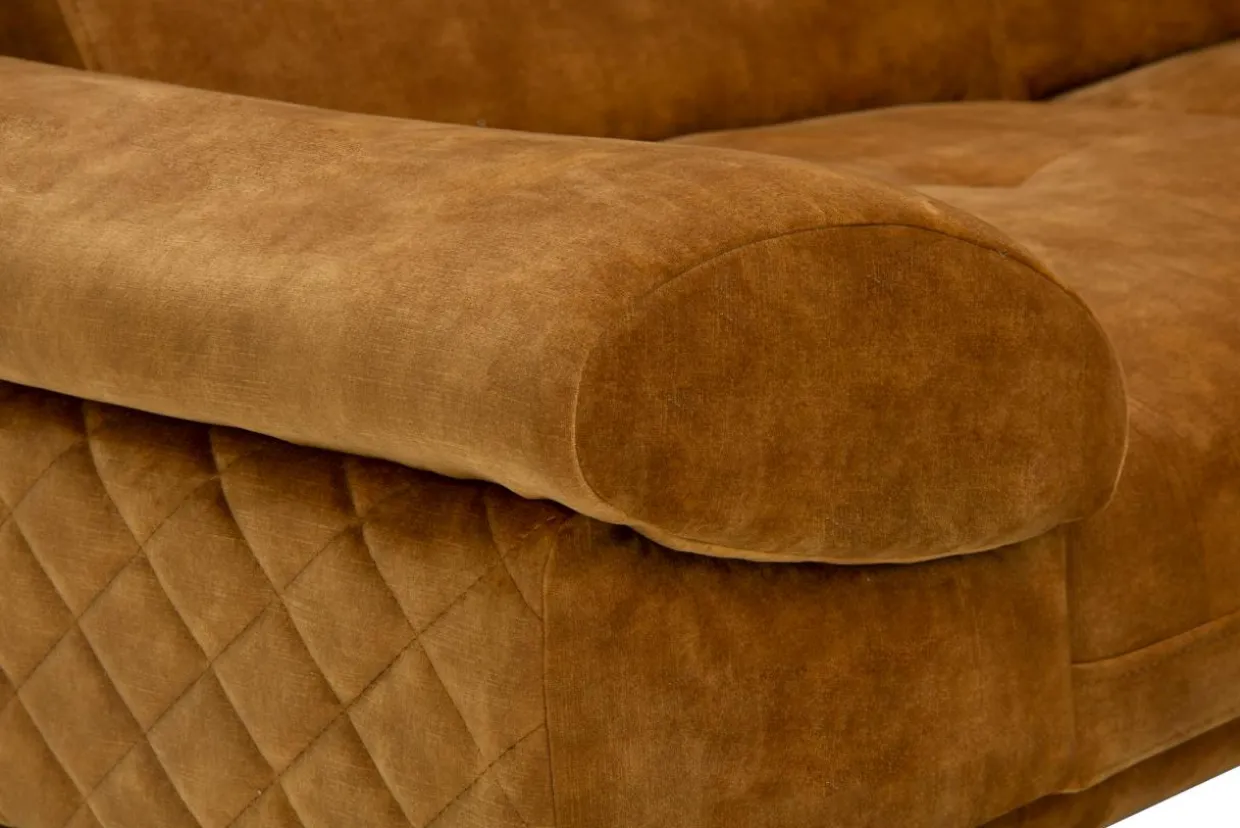 Wszystko dzięki połyskującej, welurowej tkaninie w odcieniu miodowo-złotym.