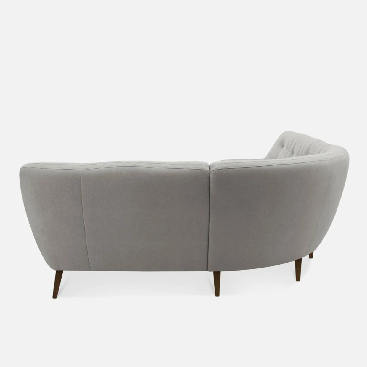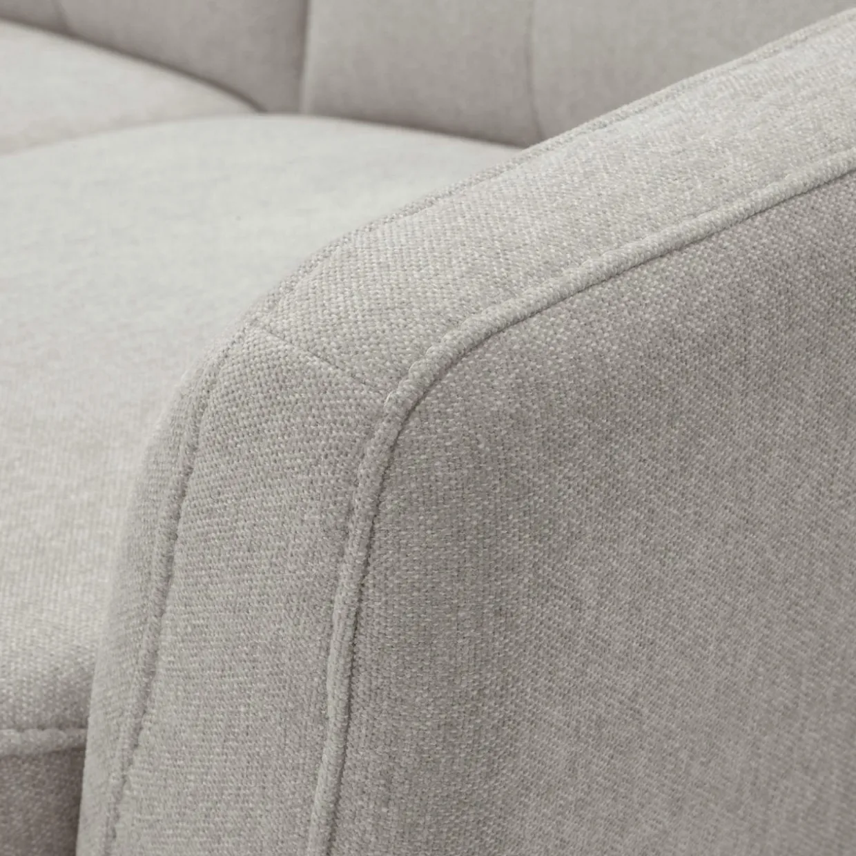 Drewniane, wysokie nóżki i ozdobne pikowanie na oparciu sprawiają, że narożnik SCANDI przyciąga wzrok.