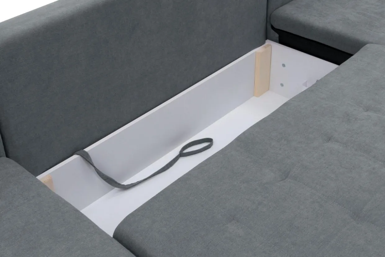 Pod siedziskiem znajduje się pojemnik. Trzymaj w nim pościel, będzie zawsze pod ręką podczas rozkładania.