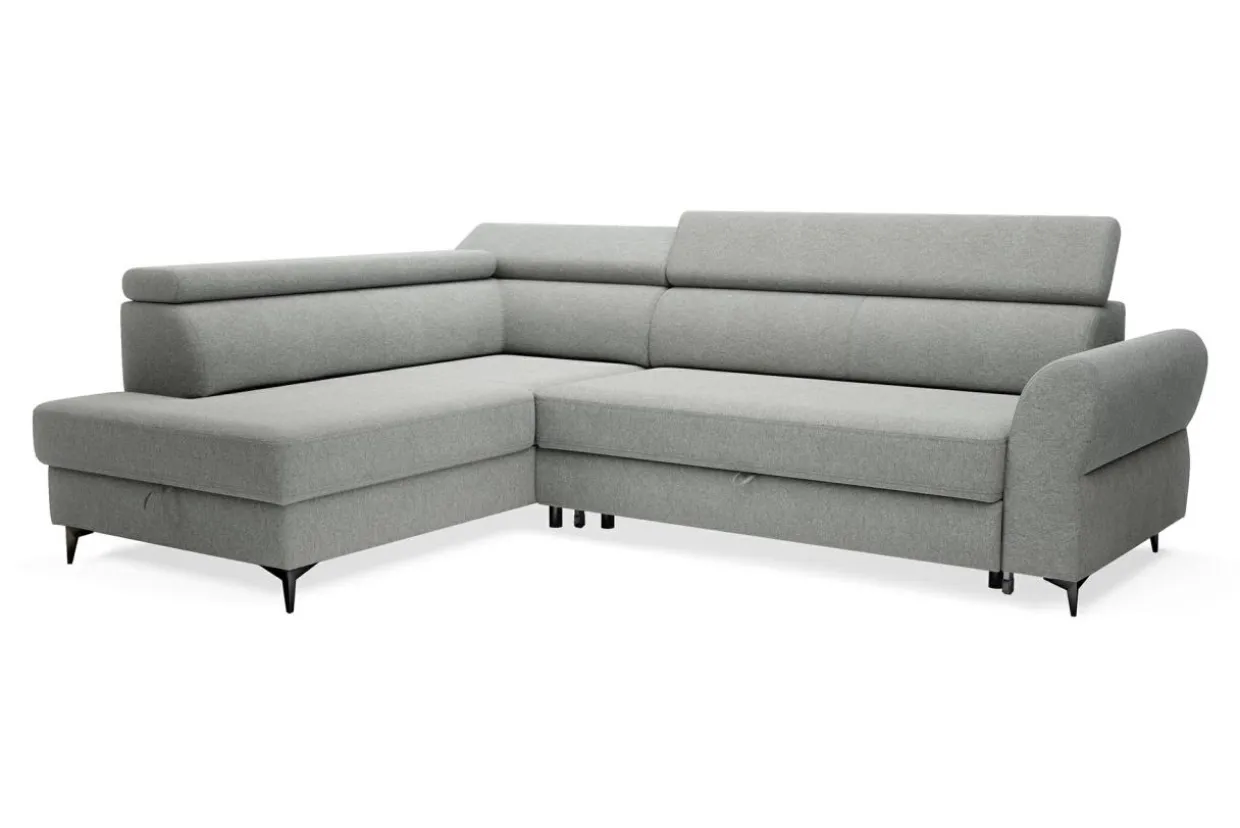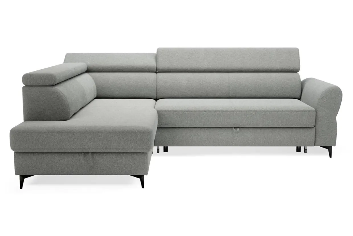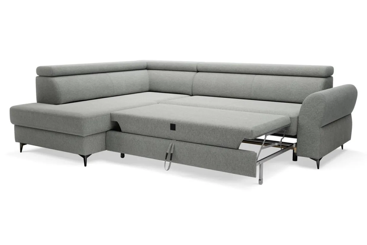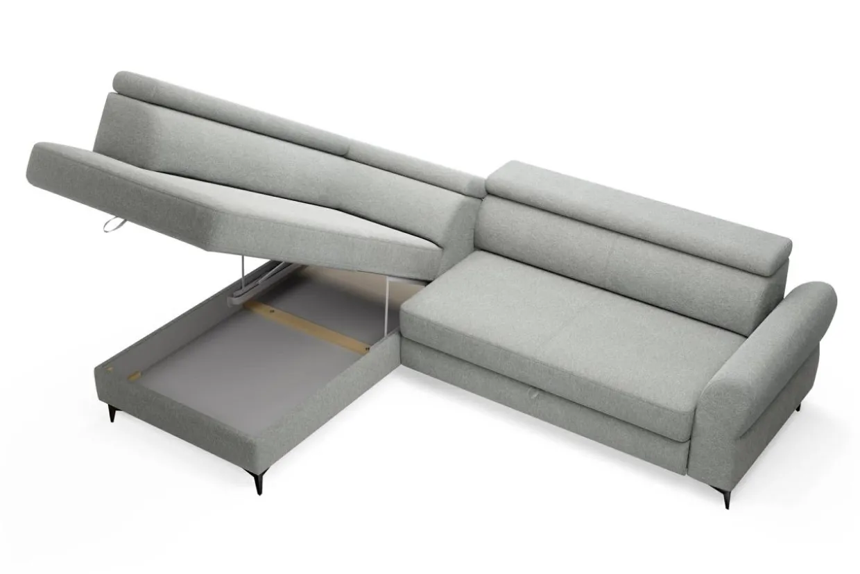 Spory pojemnik na pościel znajduje się w otomanie, dlatego możesz z niego korzystać niezależnie od tego, czy narożnik jest rozłożony czy nie.