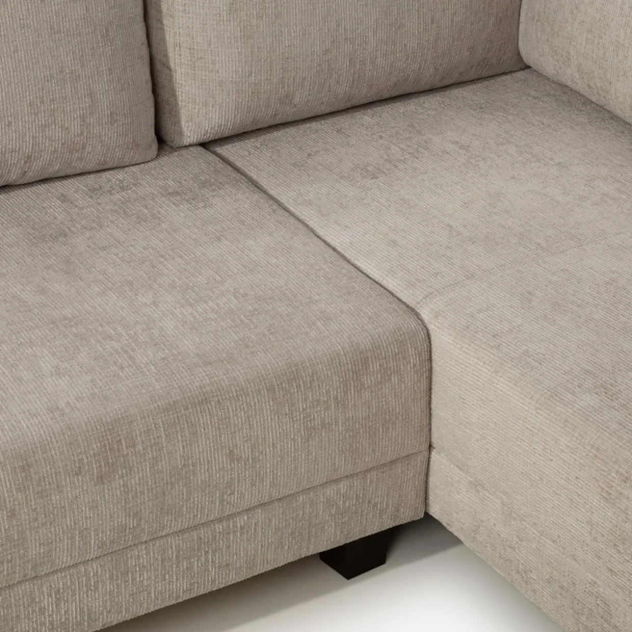 Narożnik MEDISON został wykończony plecionką w kolorze cappuccino. Krótki „meszek” tkaniny jest miękki dla skóry i przyjemny w odczuciach. Ciepły odcień beżu stworzy w salonie przytulną atmosferę, w której chętnie się zrelaksujesz.