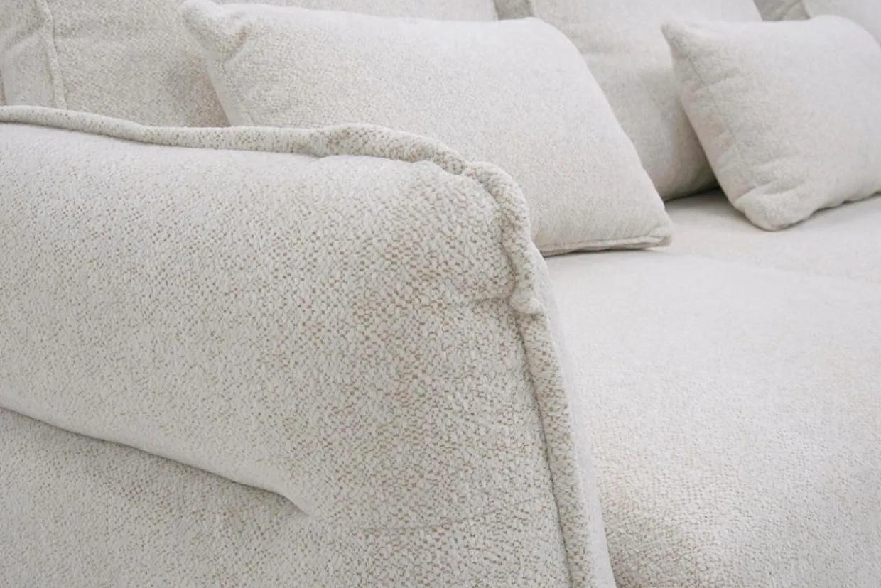 - Narożnik został obity tkaniną RAVEN, który jest bardzo przyjemna w dotyku oraz przypomina boucle.