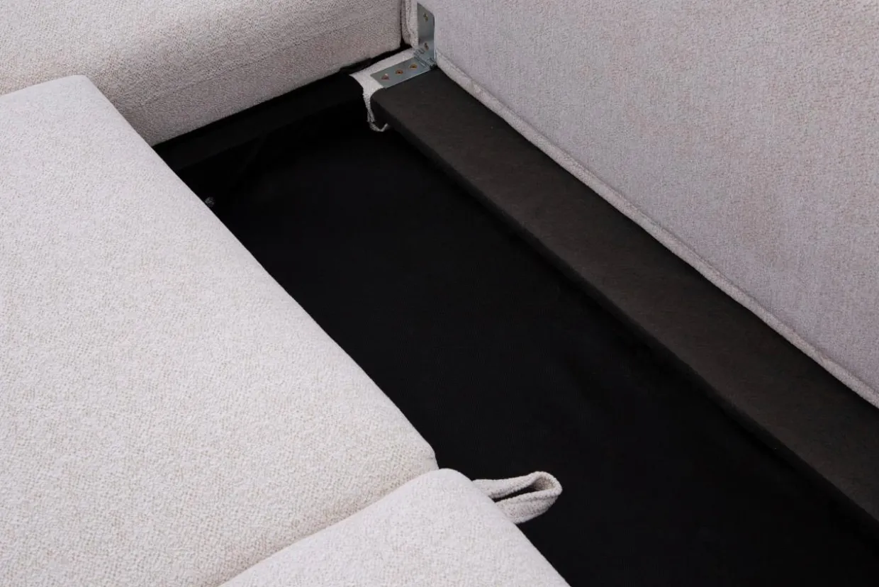 - Narożnik został obity tkaniną RAVEN, który jest bardzo przyjemna w dotyku oraz przypomina boucle.