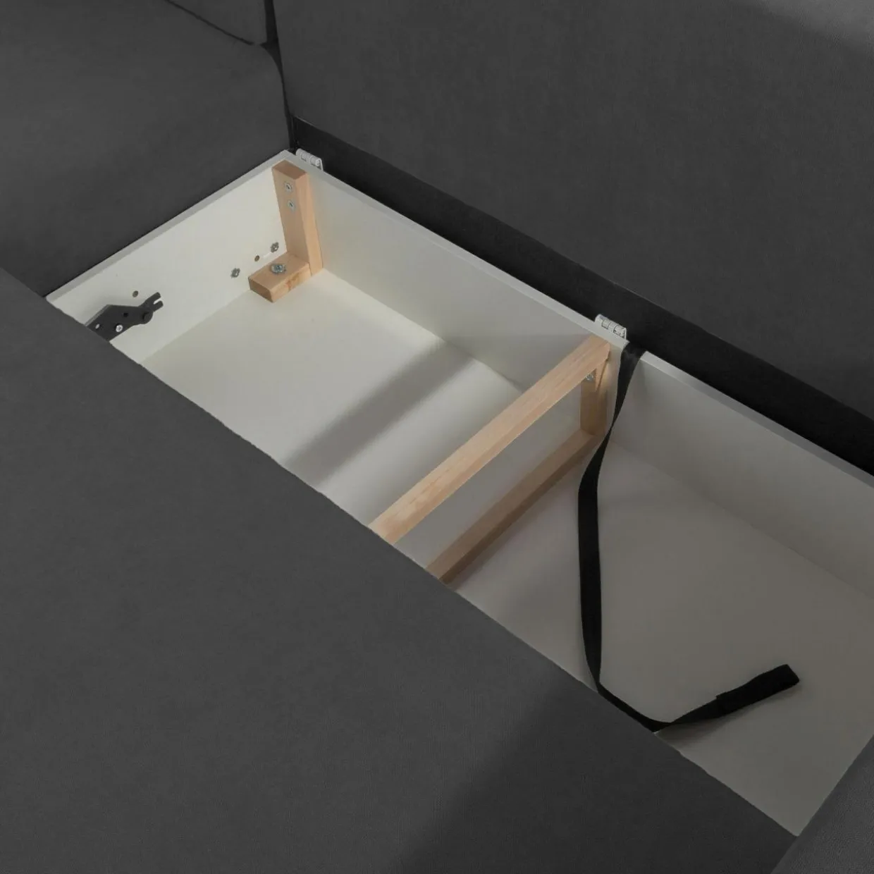 - W pojemniku pod siedziskiem znajdziesz miejsce na komplet pościeli i inne domowe tekstylia.