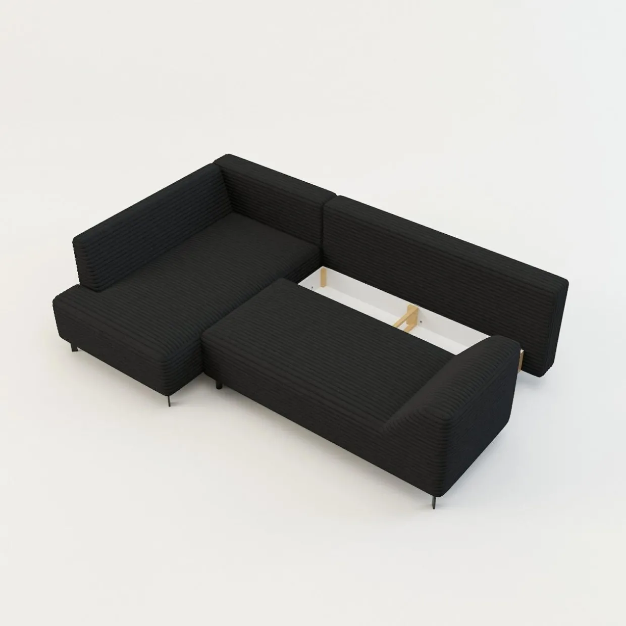 - Podczas rozkładania narożnika uzyskasz dostęp do pojemnika. Schowaj w nim pościel, a będzie zawsze pod ręką.