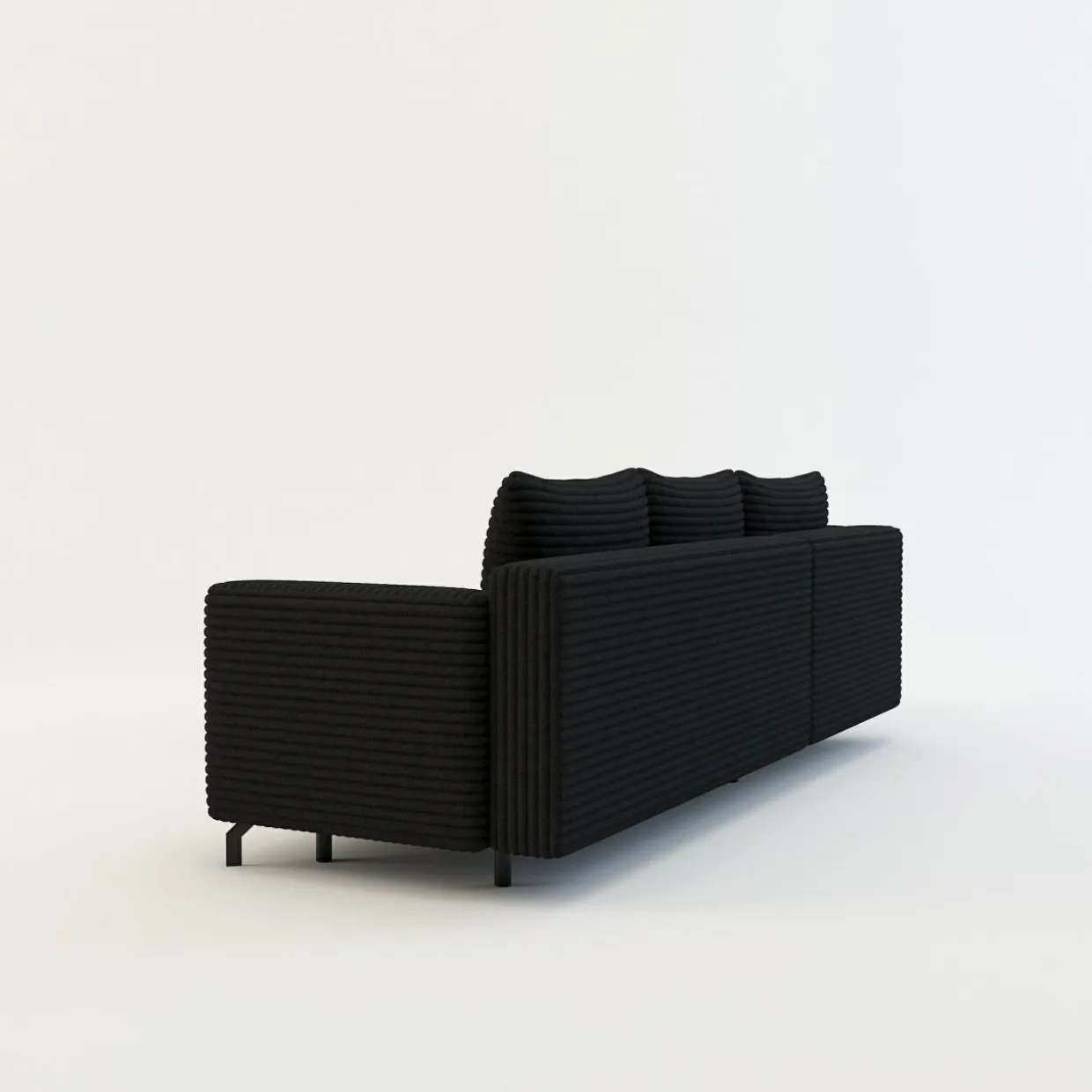 - Pluszowy materiał układa się w miękkie pasy, które zachęcają do odpoczynku.