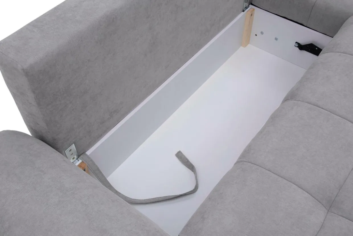 Narożnik został wyposażony w możliwość rozłożenia i tym samym zwiększenia powierzchni przeznaczonej do wypoczynku.