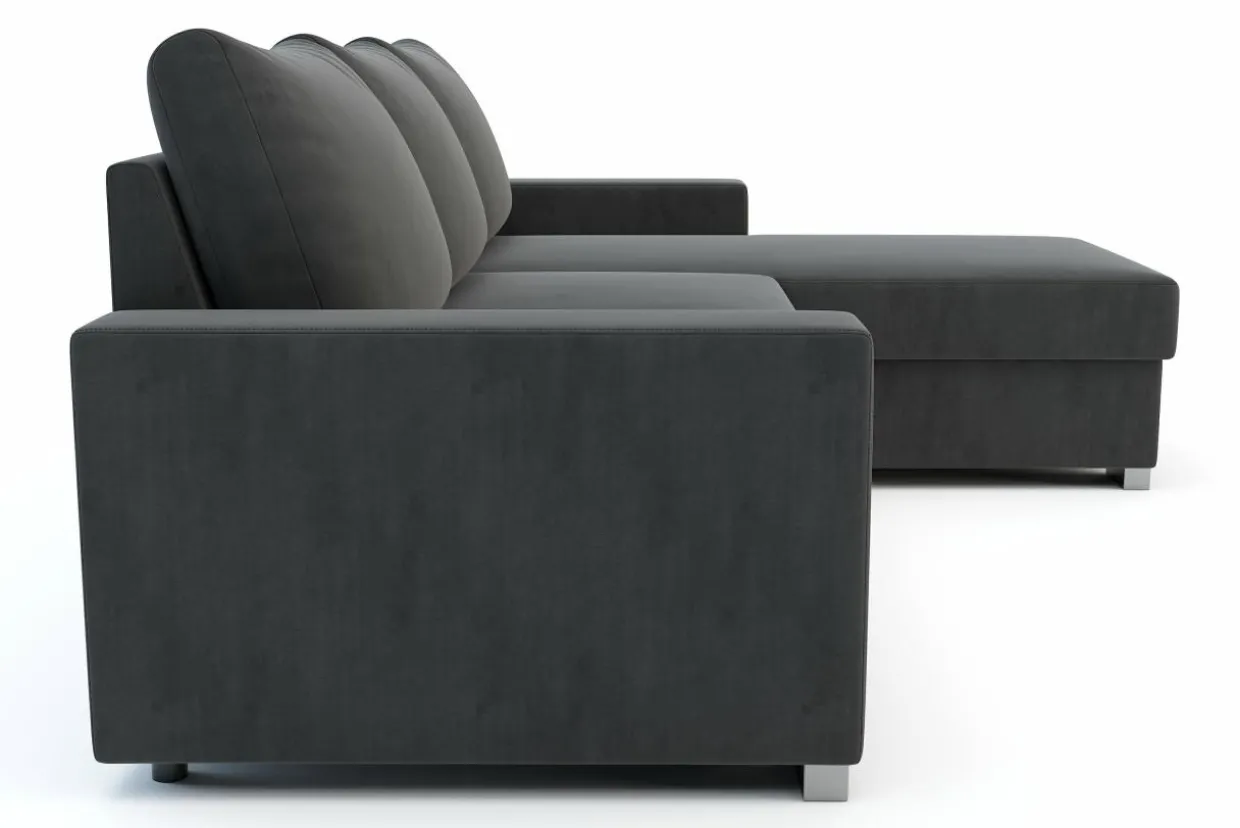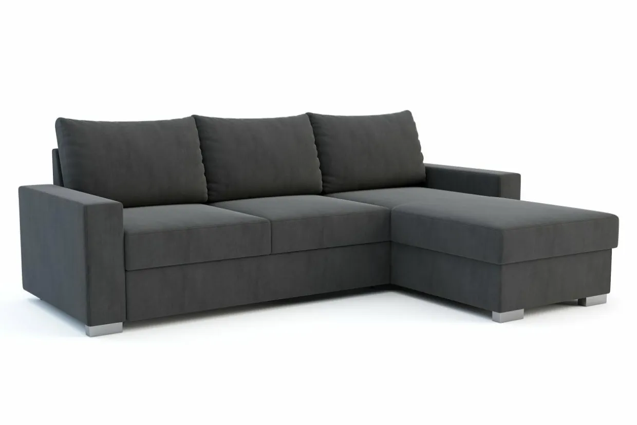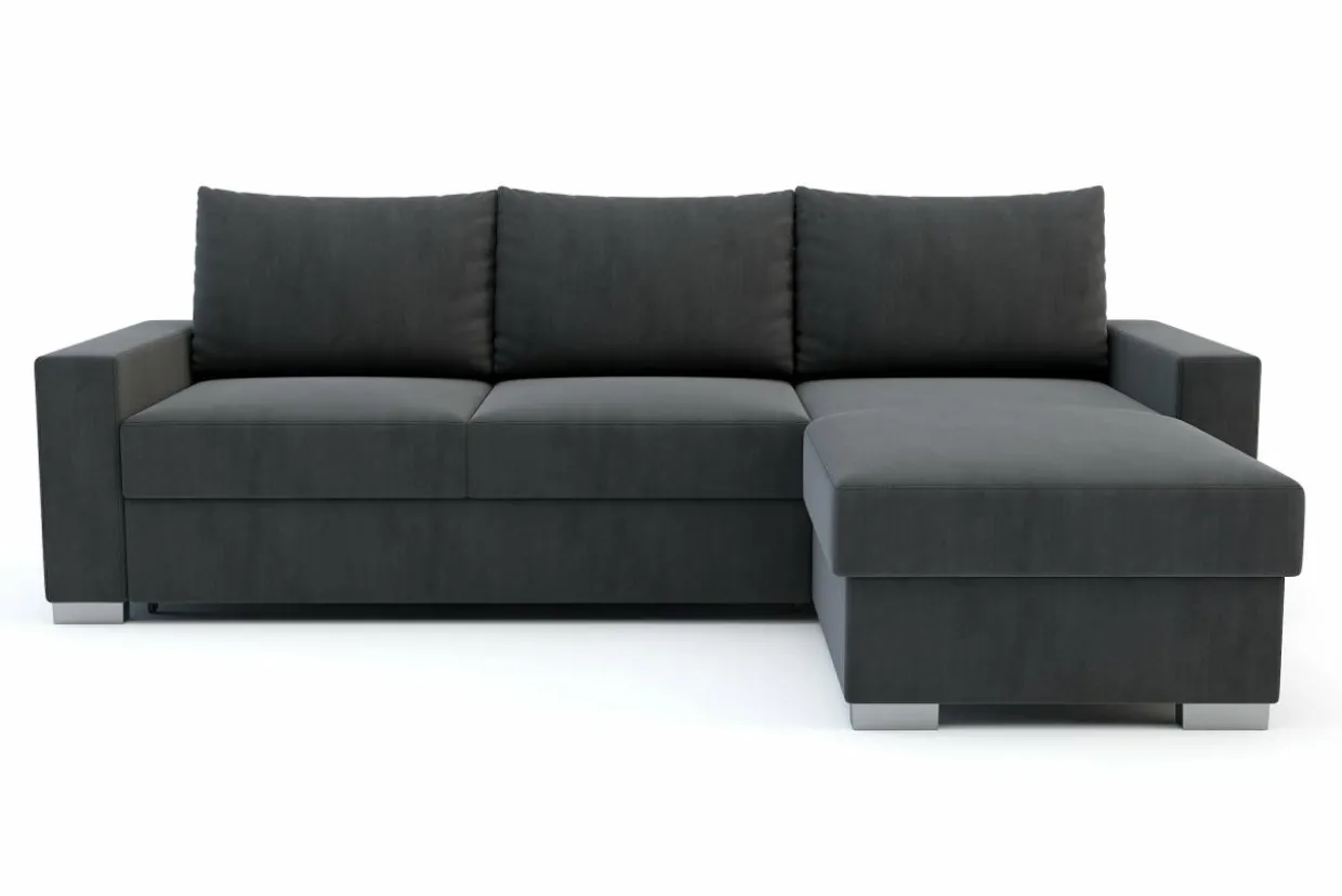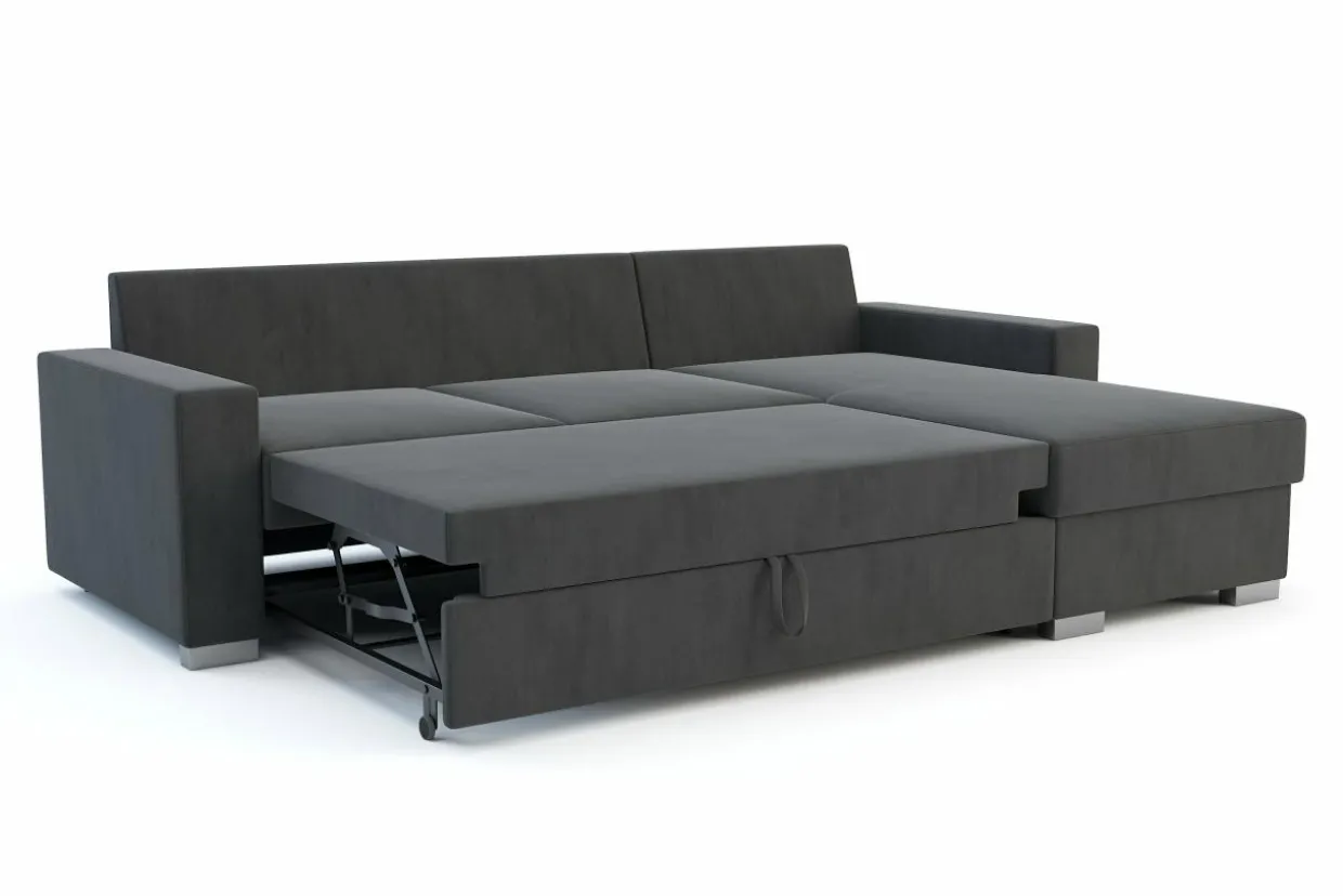 - Narożnik posiada wygodny system rozkładania typu delfin: wysuń siedzisko, pociągnij za specjalny uchwyt i szybko powiększ powierzchnię spania.