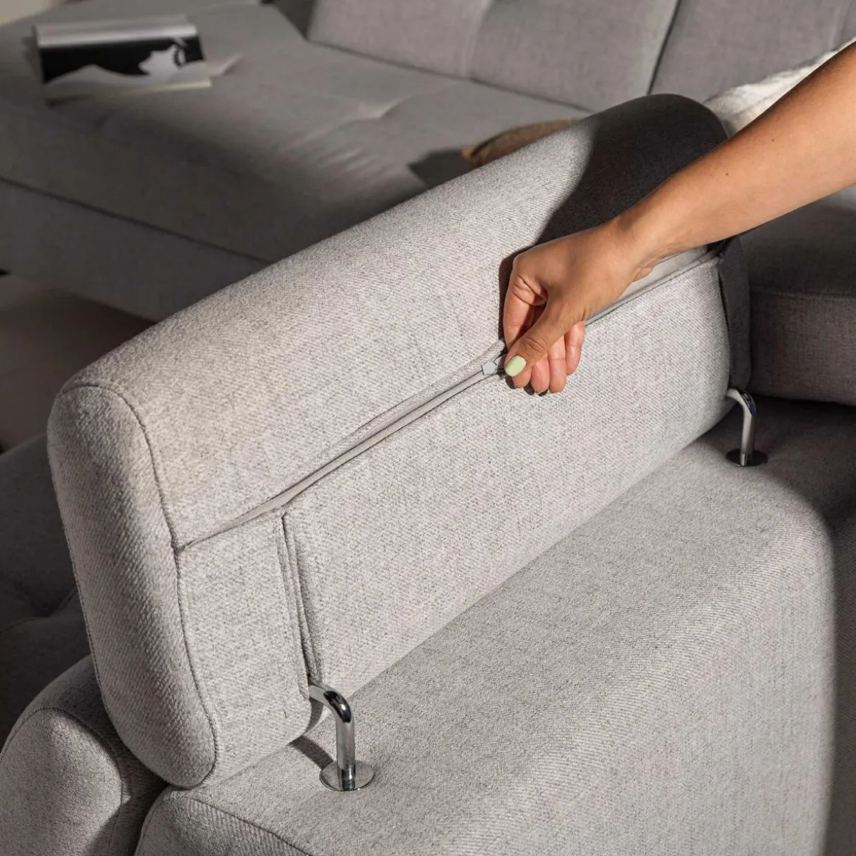 Jasnoszara tkanina ma strukturę plecionki, ale jest przyjemna w dotyku – zapewnia przyjemne doznania i elegancki wygląd.