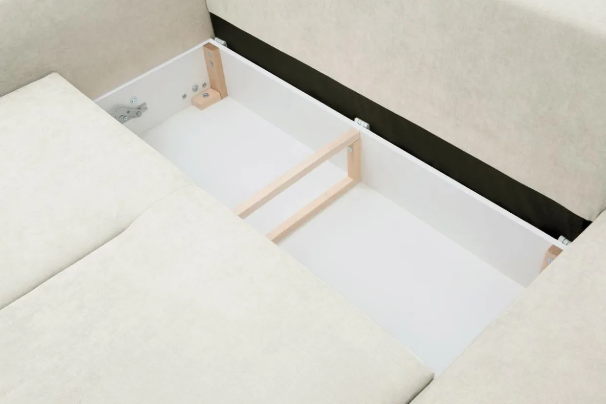 Z pojemnika, znajdującego się pod siedziskiem możesz korzystać w trakcie rozkładania narożnika.