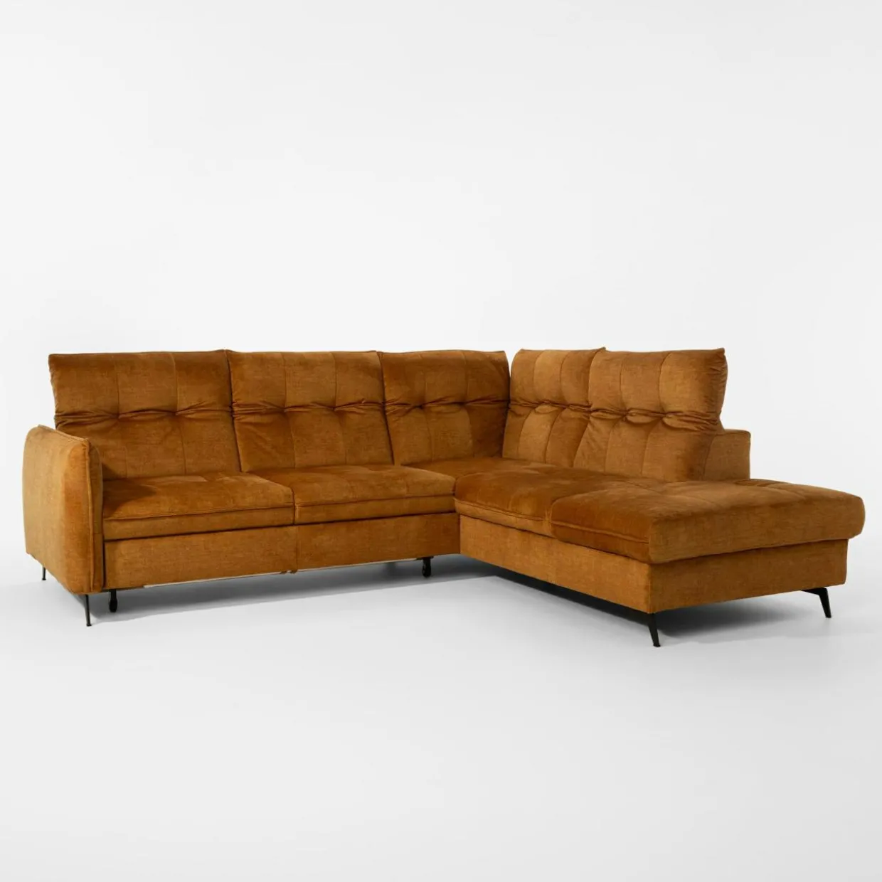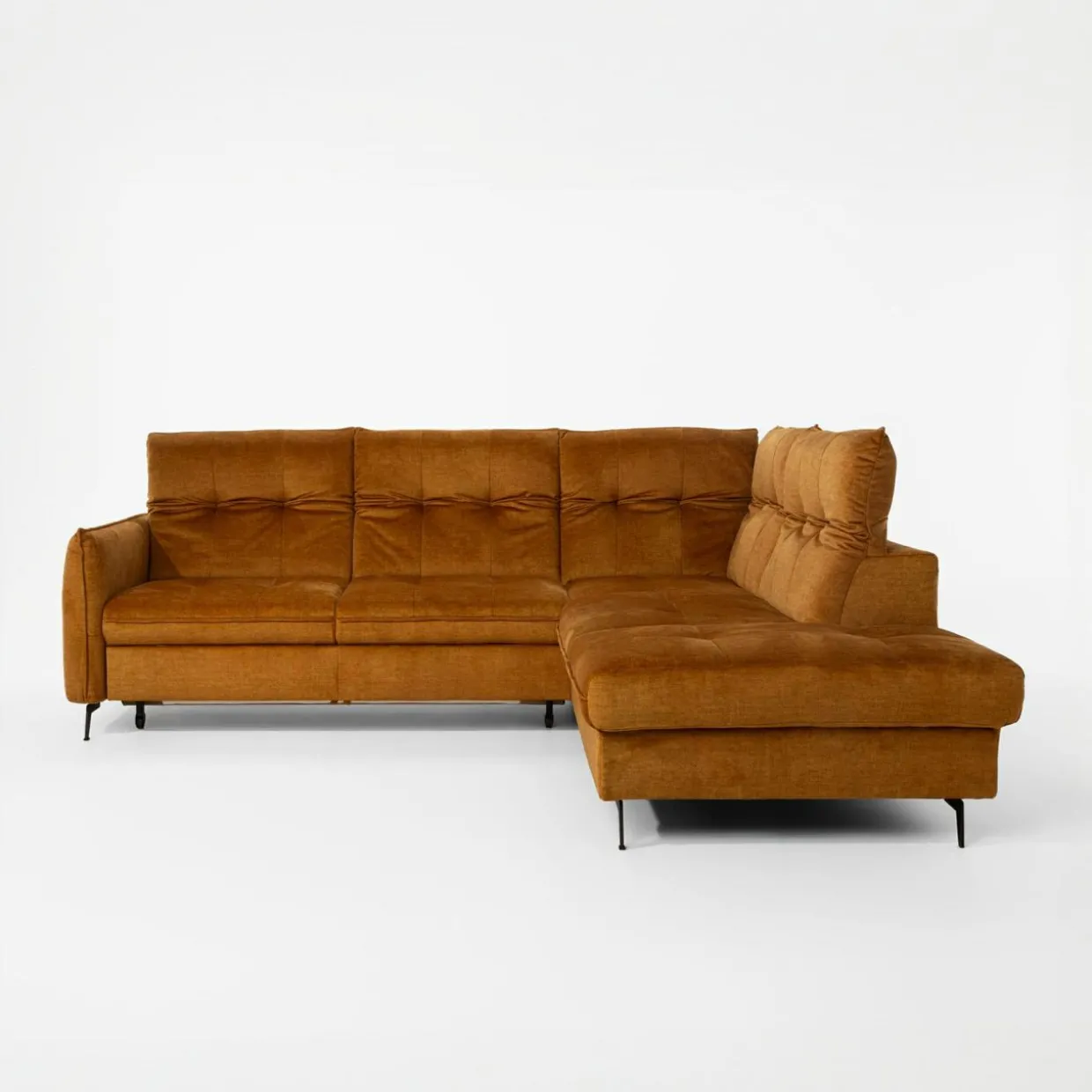 Lubisz odważne kolory we wnętrzu? Narożnik GOJA zachwyci Cię musztardowym odcieniem, który umili Ci każdą chwilę przy porannej kawie. Docenisz go też za wysokie nóżki, dzięki którym będzie prezentować się lekko i zgrabnie w Twoim salonie.