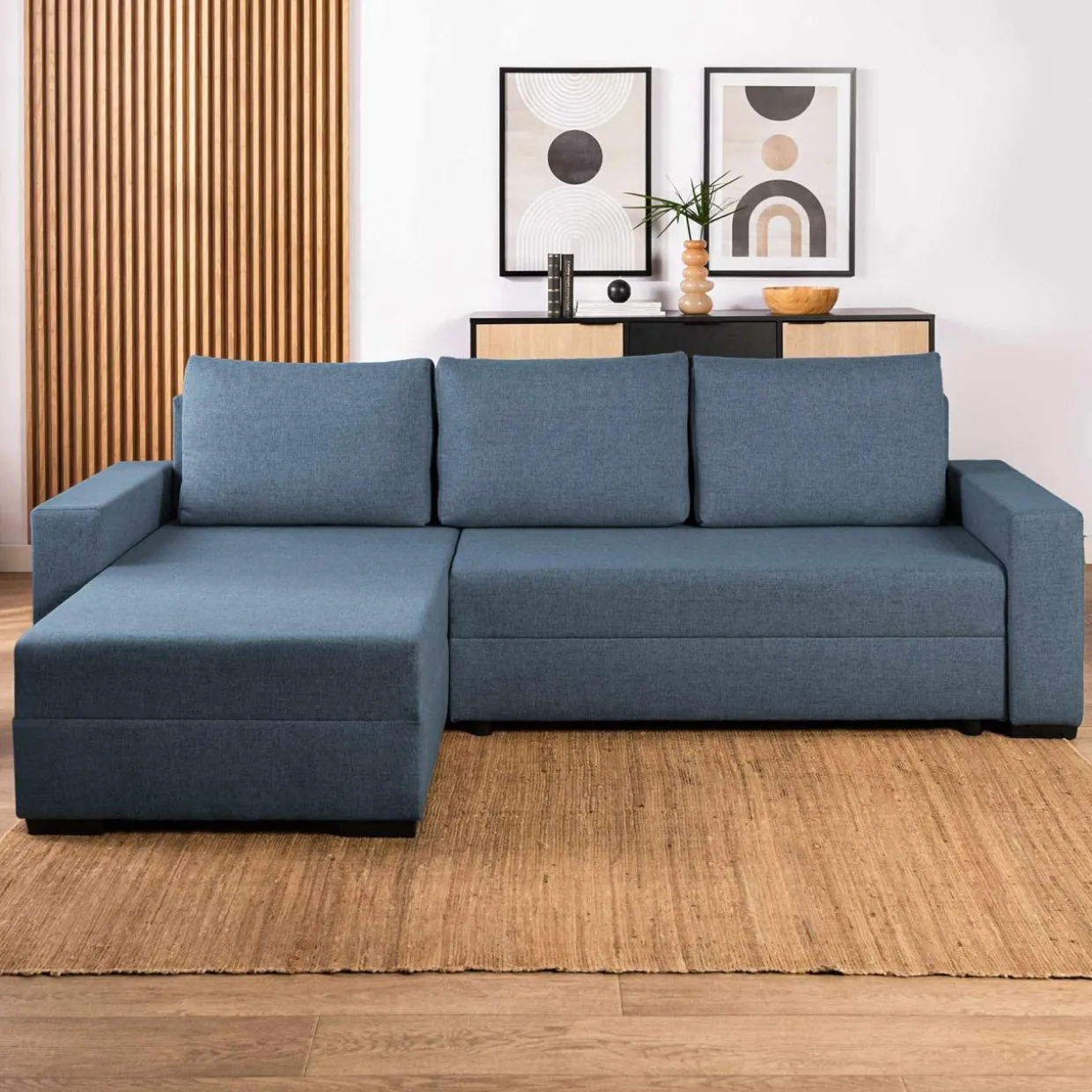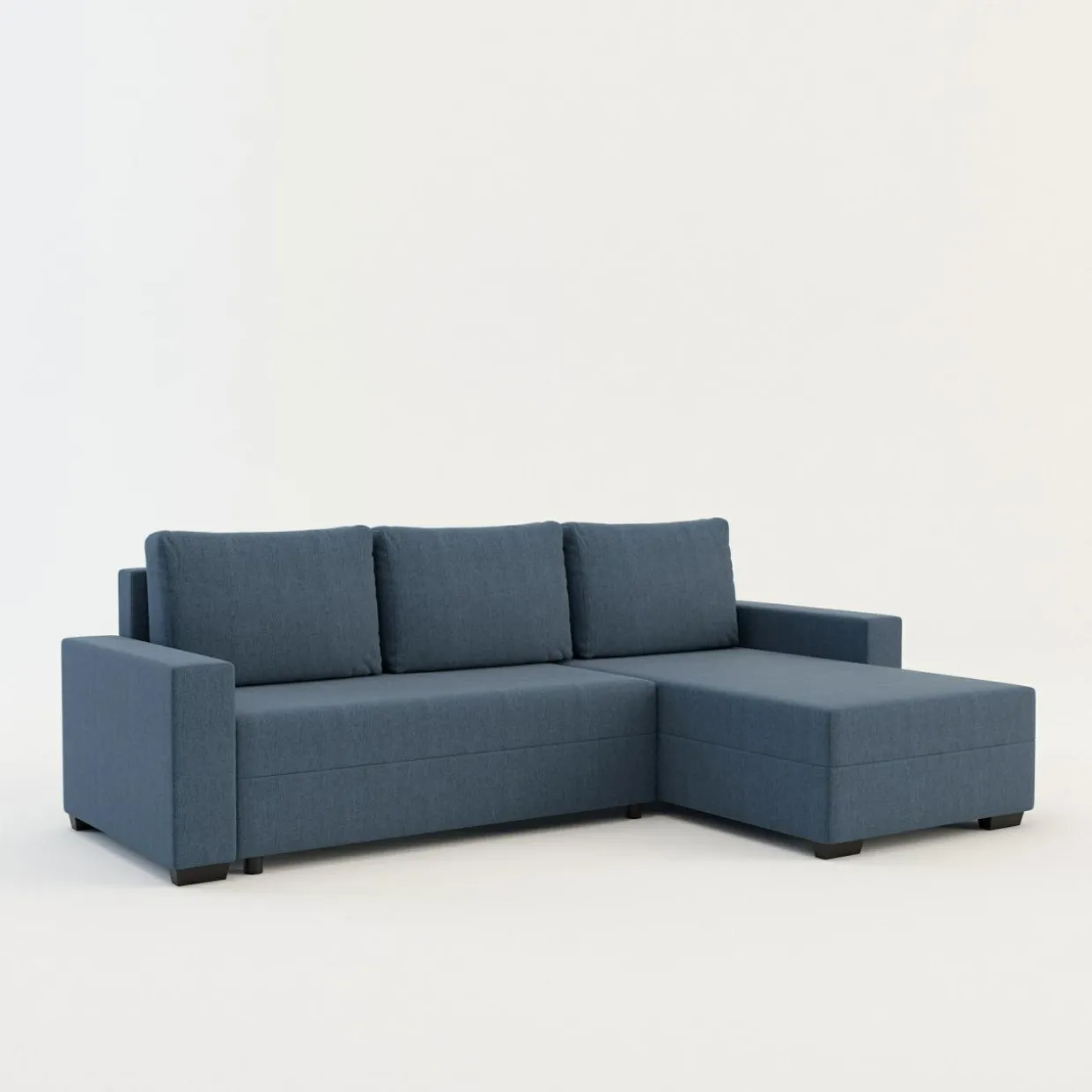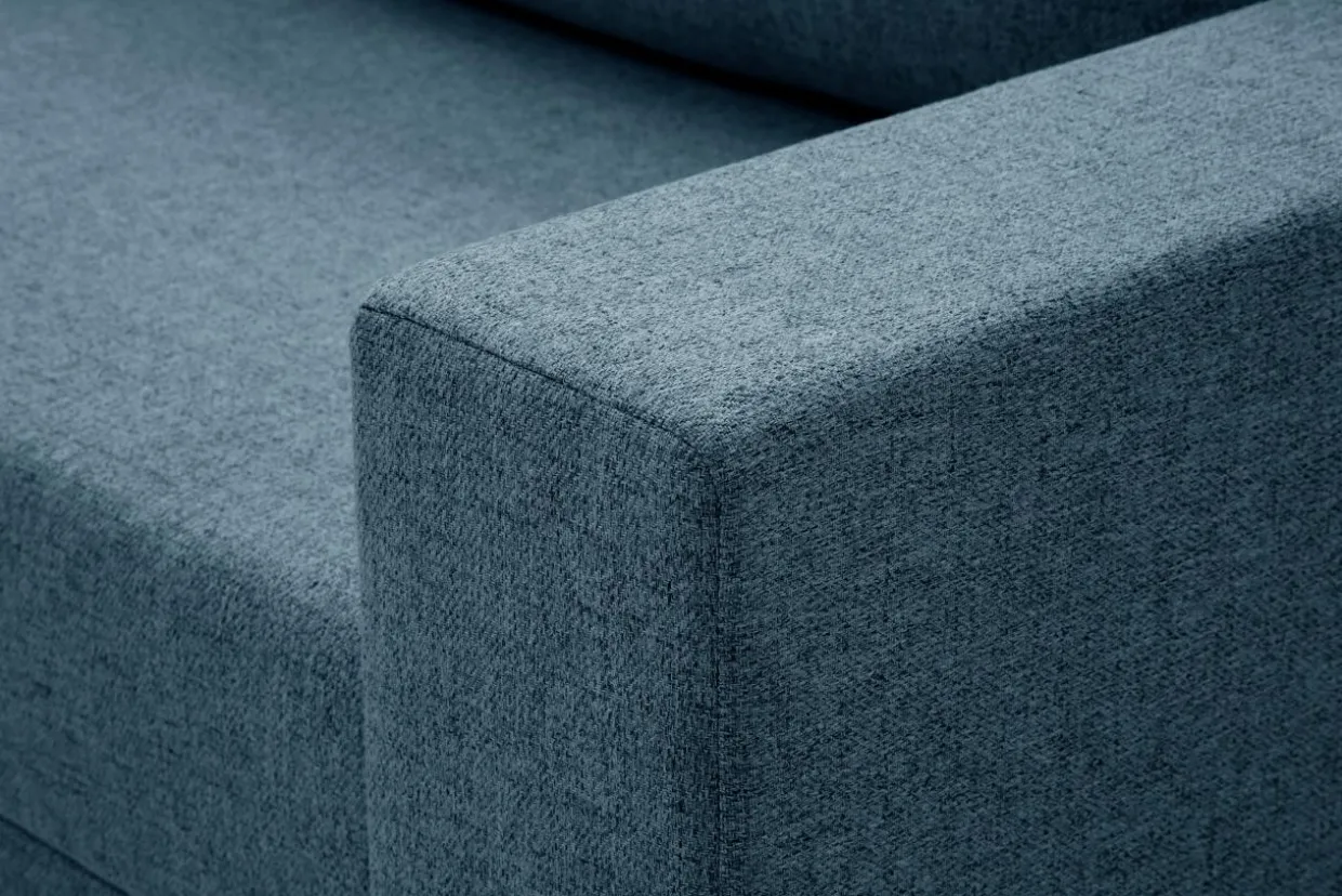 Stawiasz na minimalizm? Narożnik ASNA w niebieskim kolorze, dzięki prostej bryle będzie świetnie się prezentował w surowych wnętrzach.