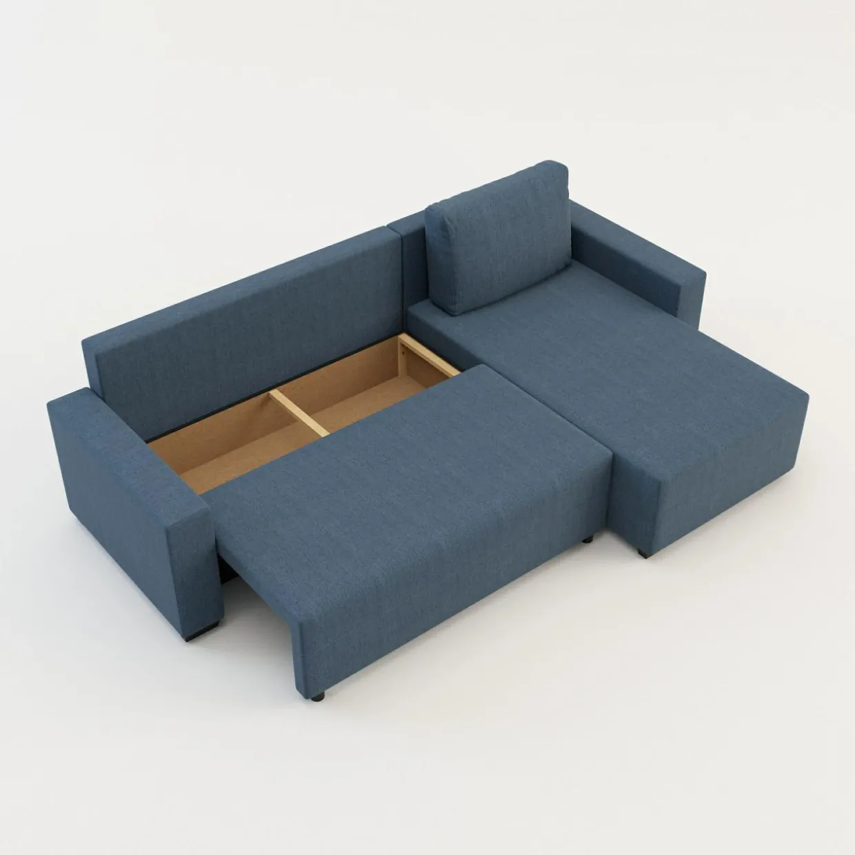 - Pod siedziskiem znajduje się pojemnik na pościel, do którego schowasz poduszkę, kołdrę i inne tekstylia domowe.