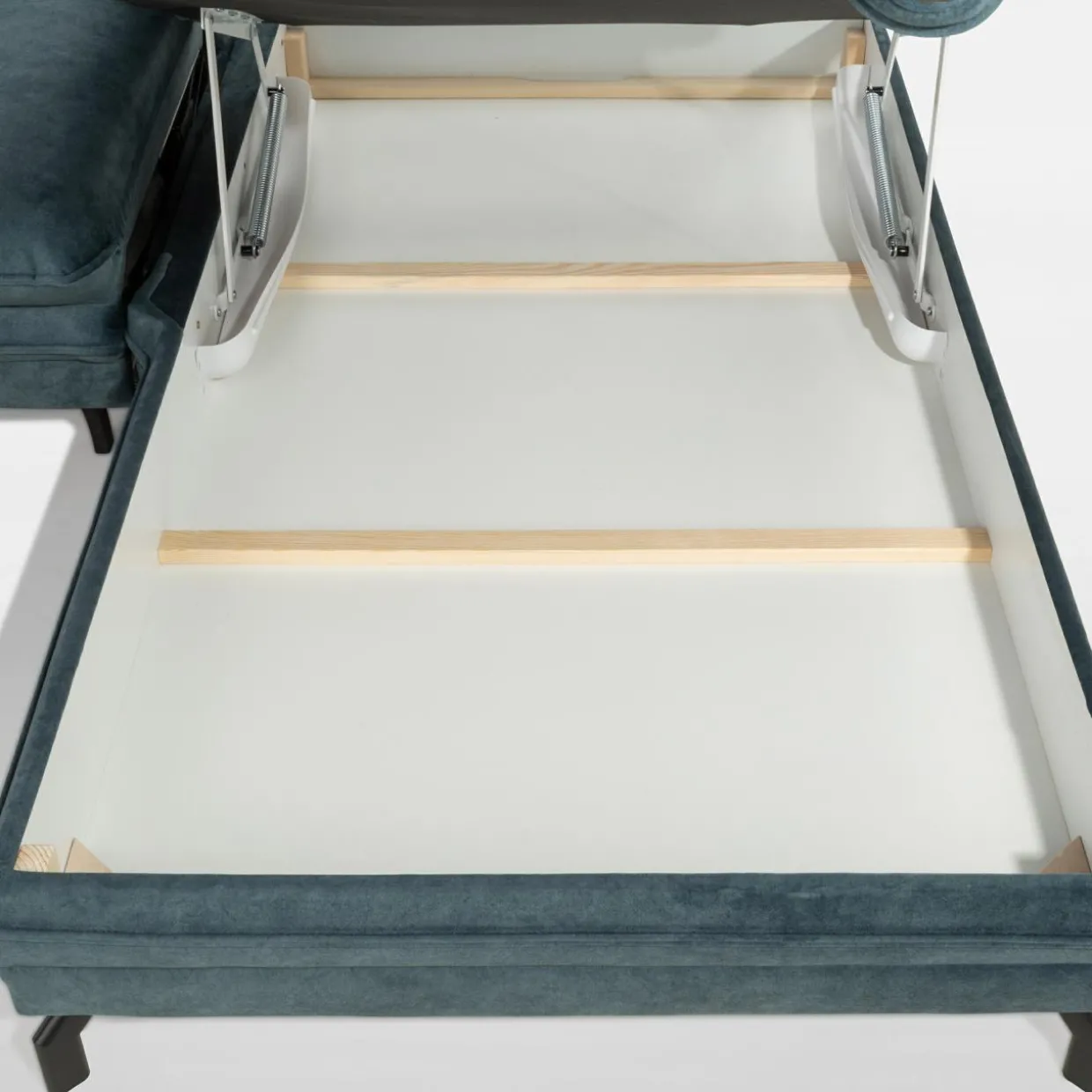 - Pojemnik w leżance to wygodne miejsce do przechowywania dodatkowego kompletu pościeli