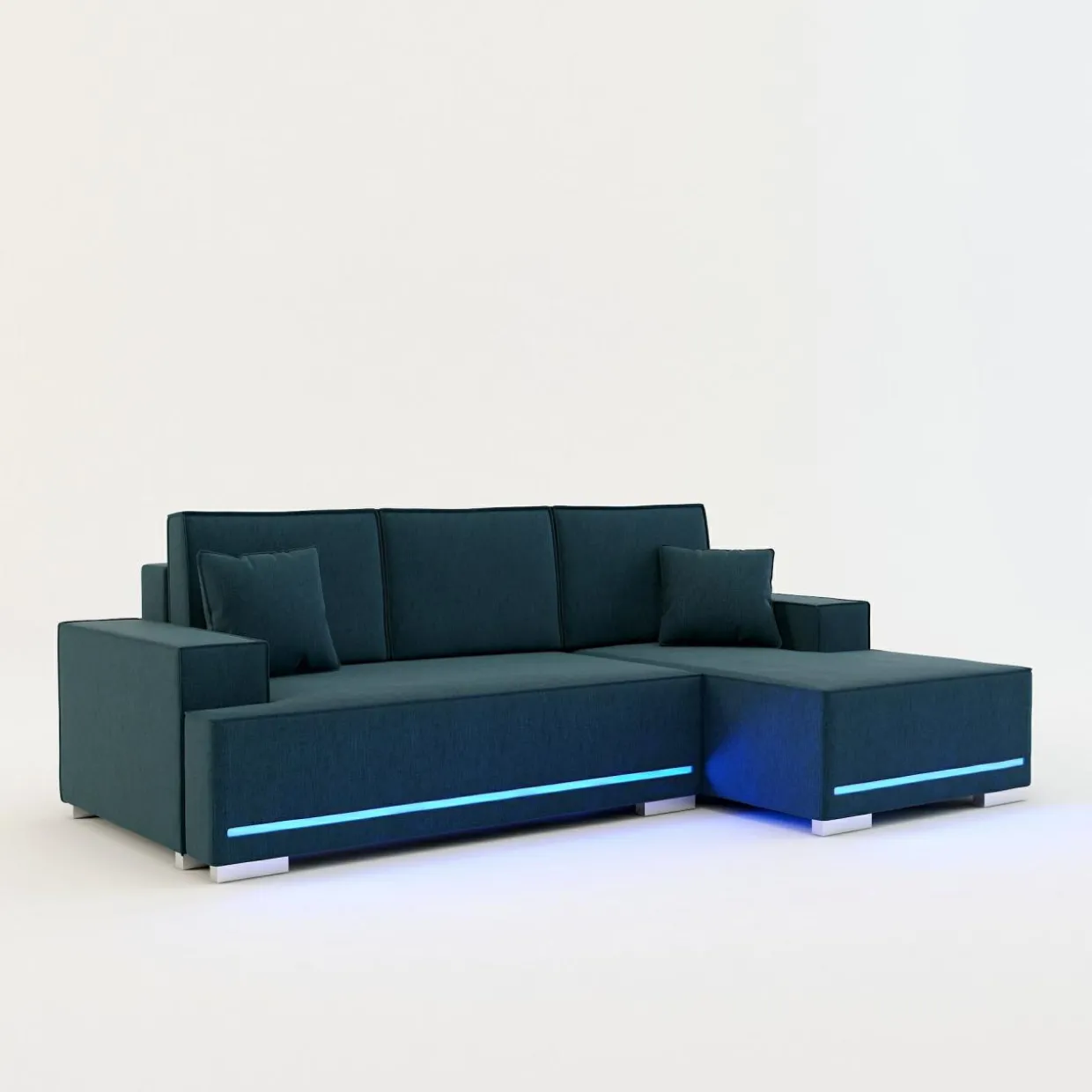 Za dnia będzie komfortowym miejscem do odpoczynku, a w nocy zamieni się w przyjemną przestrzeń, w której ugościsz znajomych na domówce. Narożnik EVERETT z niebieskim podświetleniem LED po zmroku doda klimatu do Twojego salonu.