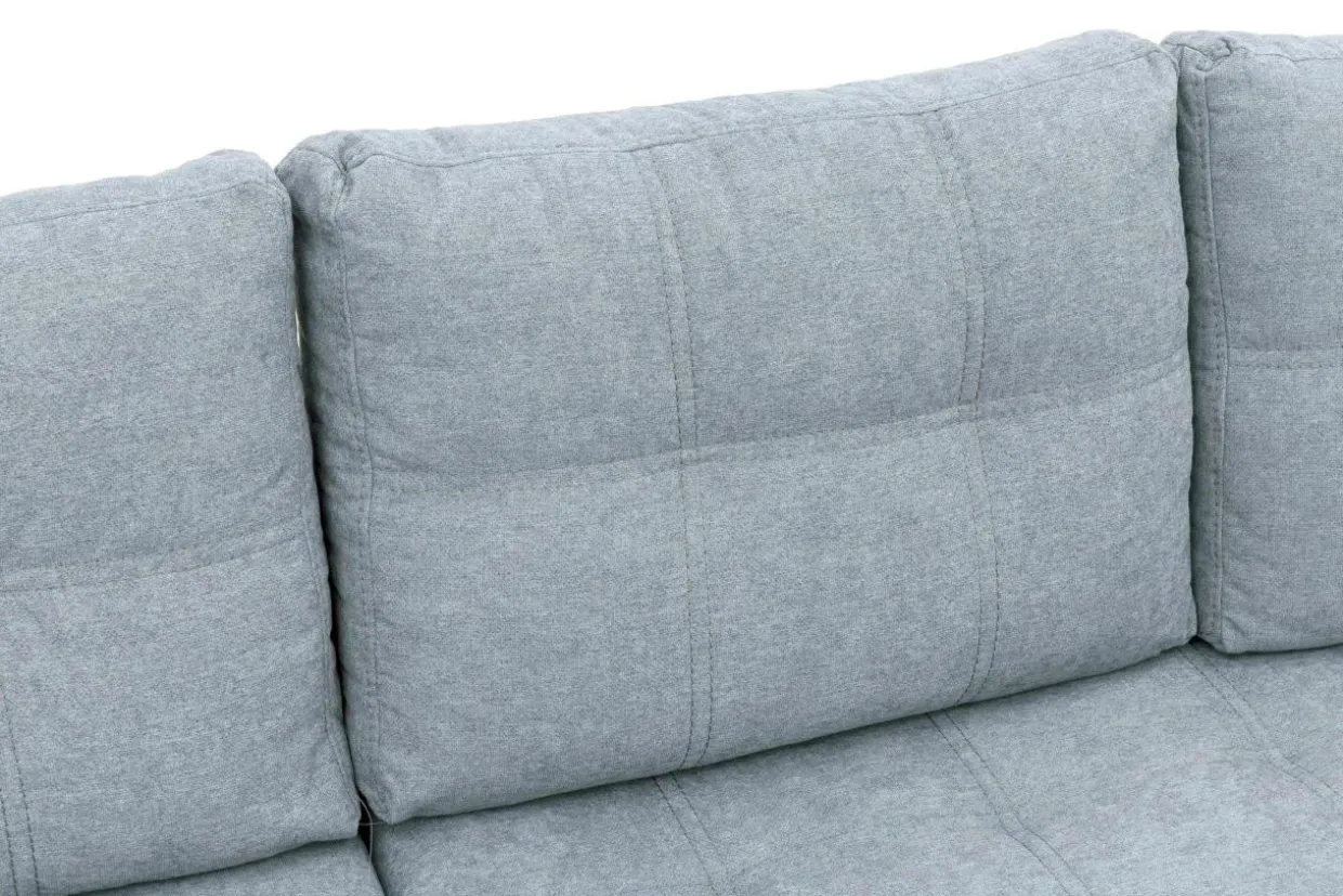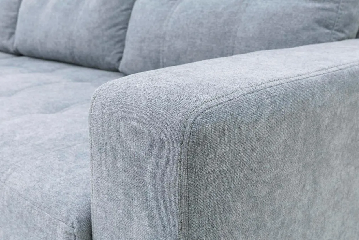 - Masywny, szary narożnik wpasuje się w nowoczesne salony, a dzięki subtelnym przeszyciom doda aranżacji eleganckiego charakteru.