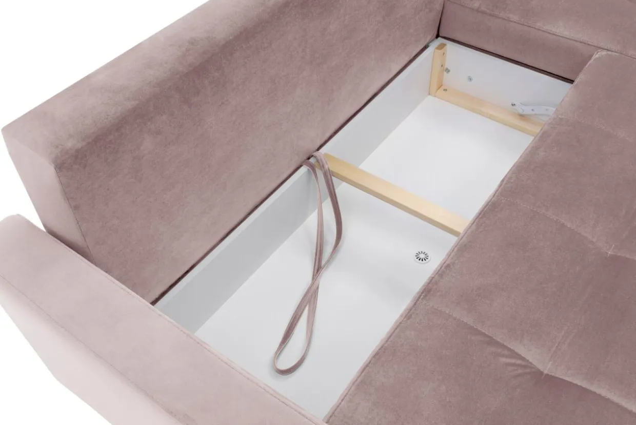 - 1 pojemnik znajduje się pod siedziskiem – to idealne miejsce na pościel, ciepły koc lub zapasowe poduszki.